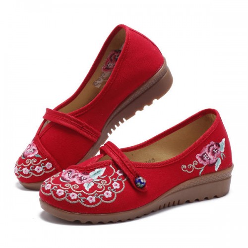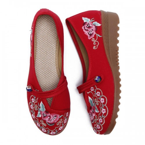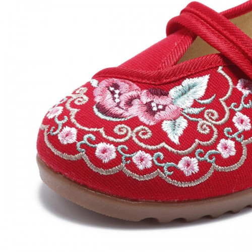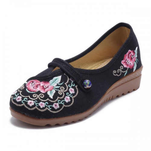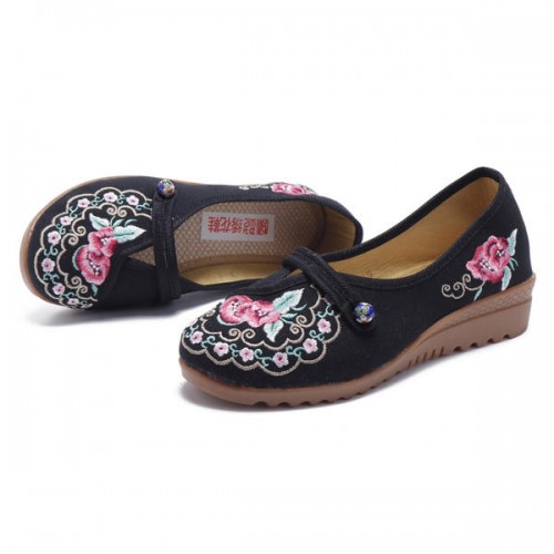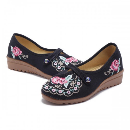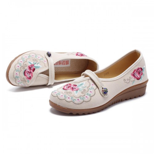 Vintage Old Peking Women Shoes Flower Embroidery Comfortable Soft Flats