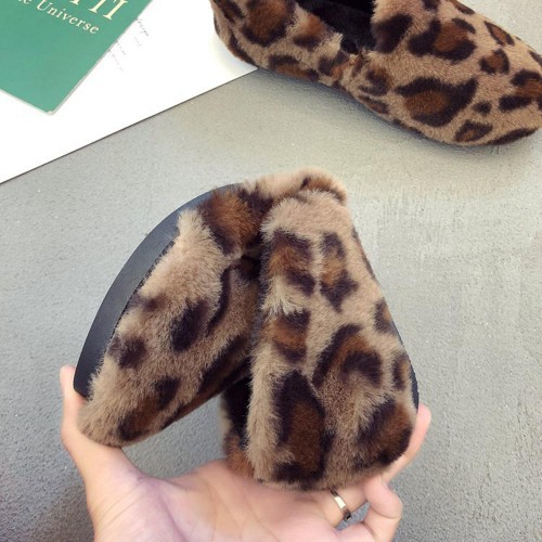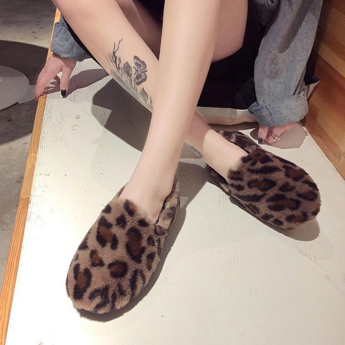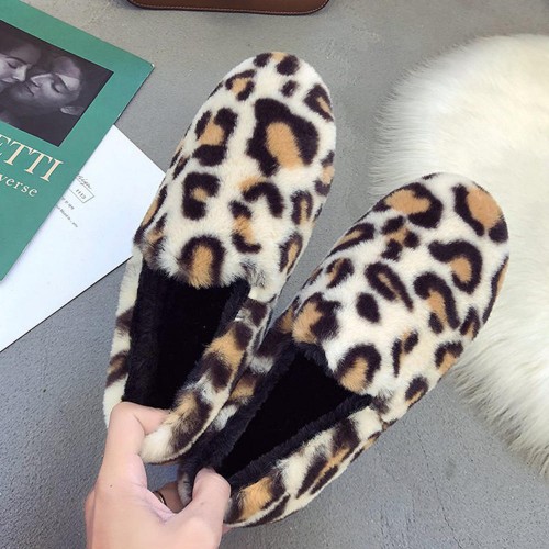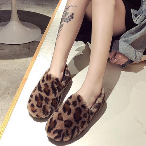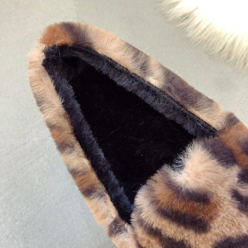 Leopard Grain Fluffy Lining Warm Casual Flat Loafers