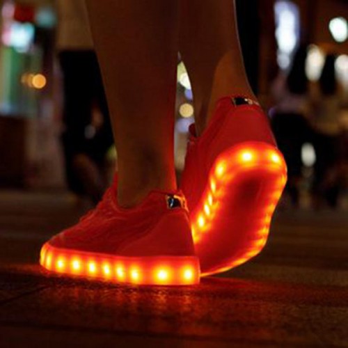 These designer sneakers are probably none like anything you’ve seen before, highlighting an incredible LED sneakers shine that makes you look like walking on laser. You have to see these shoes in person to believe how incredible they look when switched on. The shoe owns a fantastic LED light and includes a total of 7 colors, making it one of the most adaptable Led Sneakers on the market. It Additionally has a rechargeable battery (2 -3 hours charge can keep the shoe lighted up for up to 8 – 10 hours). These sick led sneakers shoes are waterproof, very strong and super fun to wear outdoors or to a rave party. The led sneakers are the perfect accessory for the club, a rave party, a festival or just on a night out in town. The official led sneakers are your best choice for footwear for any occasion you want to stand out. Our all classic led sneakers have a USB rechargeable port right inside the shoe, so you can wear them for years to come. That’s right, just plug the led shoes into any standard USB port, just like you’re your cell phone, and after 2 hours you’ll get a gorgeous glowing piece of footwear that will outlive you for the night! We’ve conveniently shrouded the secret on/off button in the shoe! A quick press between the second and third eyelet and your shoes will be lighting up your night or party. Do not confuse these shoes with the light up shoes you had as a child. These are SUPER BRIGHT LED SNEAKERS LIGHTS that stay lit all night long, not just when you take a step. And don’t be afraid of getting them dirty – we’re one step ahead of you! Wipe your shoes clean with a damp cloth, and you’ll be looking FRESH all night long. Sincerely, these shoes must be seen to fully experience how brilliant they are. You can choose between single colors or – if you’re feeling especially randy – pick the RANDOM mode: this one will show all the colors in an arbitrary alternating pattern.