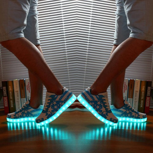 Seven colors in one shoes: yellow,purple ,white,light blue,dark blue,orange ,green and flash light.