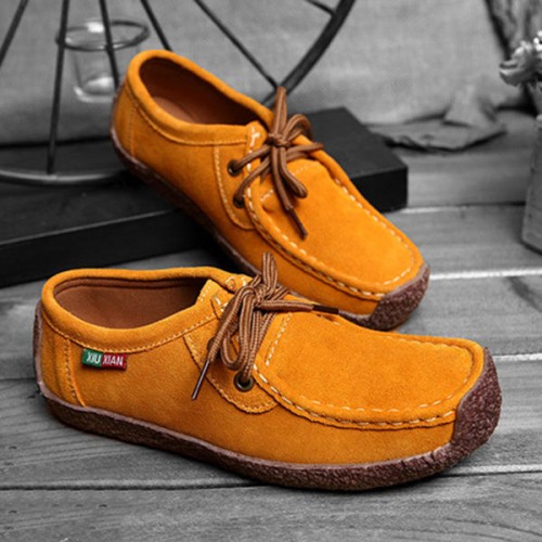 US Size 5-11 Women Suede Casual Outdoor Lace Up Comfy Flat Shoes