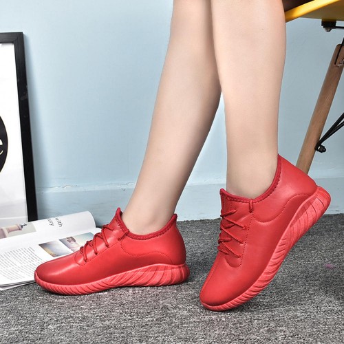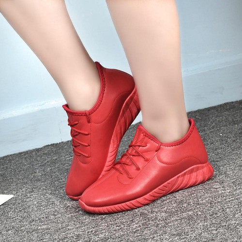 Red Color Comfy Lace Up Sneakers Casual Shoes