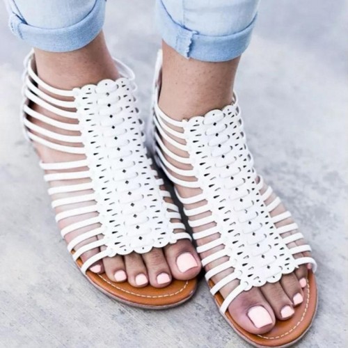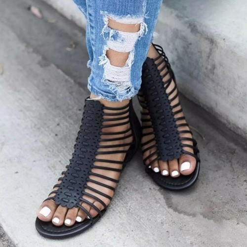 US Size 5-12 Roman Hollow Out Zipper Peep Toe Flat Sandals