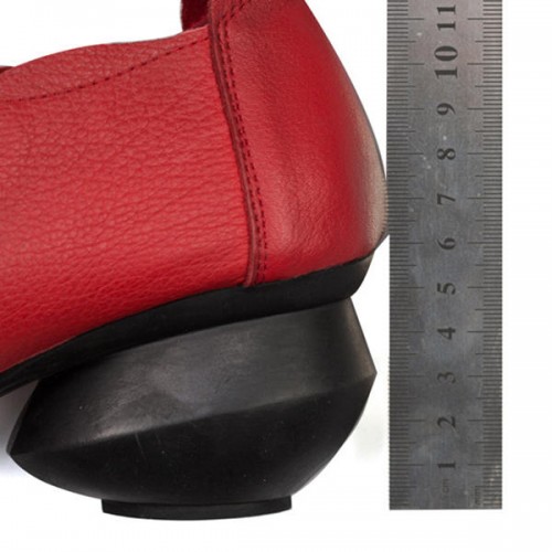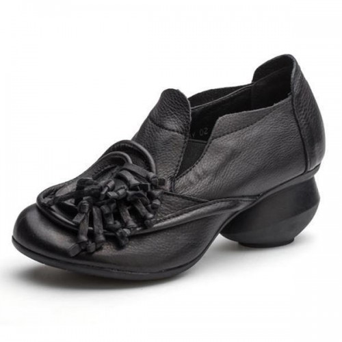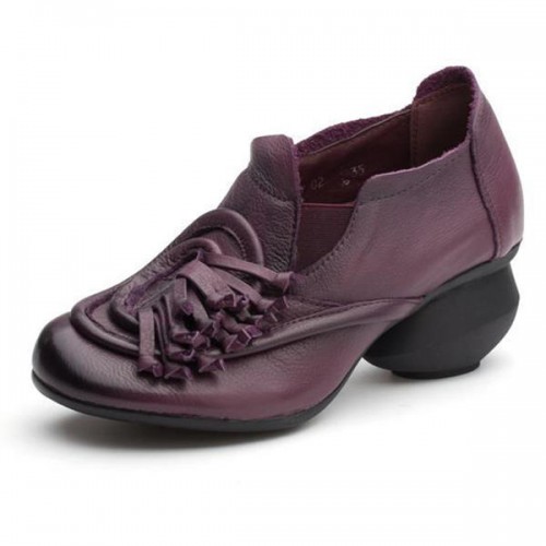 SOCOFY Retro Genuine Leather Slip On Flower Casual Shoe Pumps
