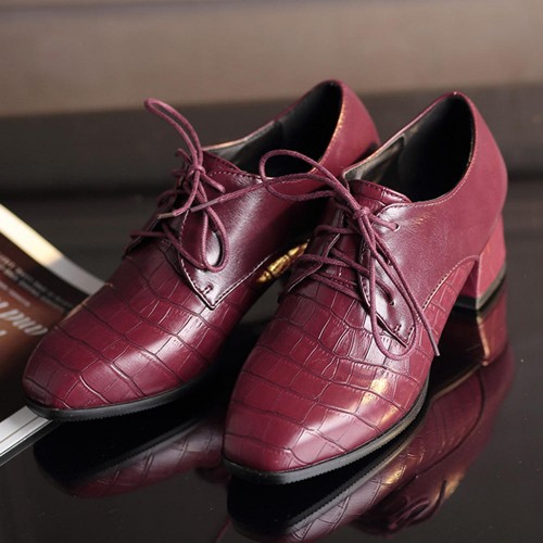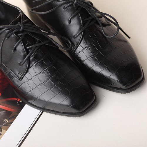 Women Pumps Crocodile Pattern Lace Up Ankle Boots