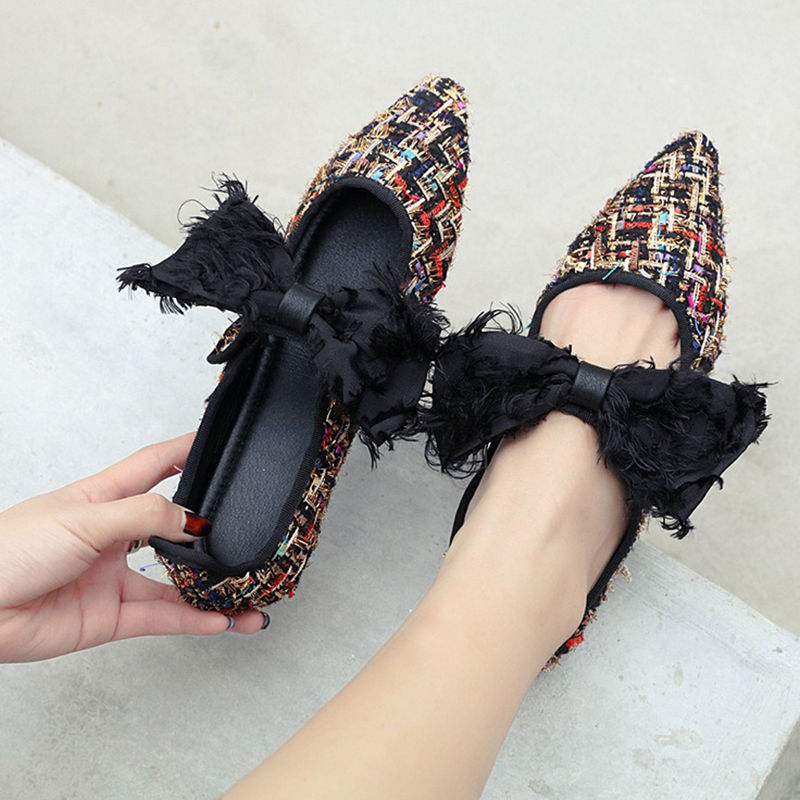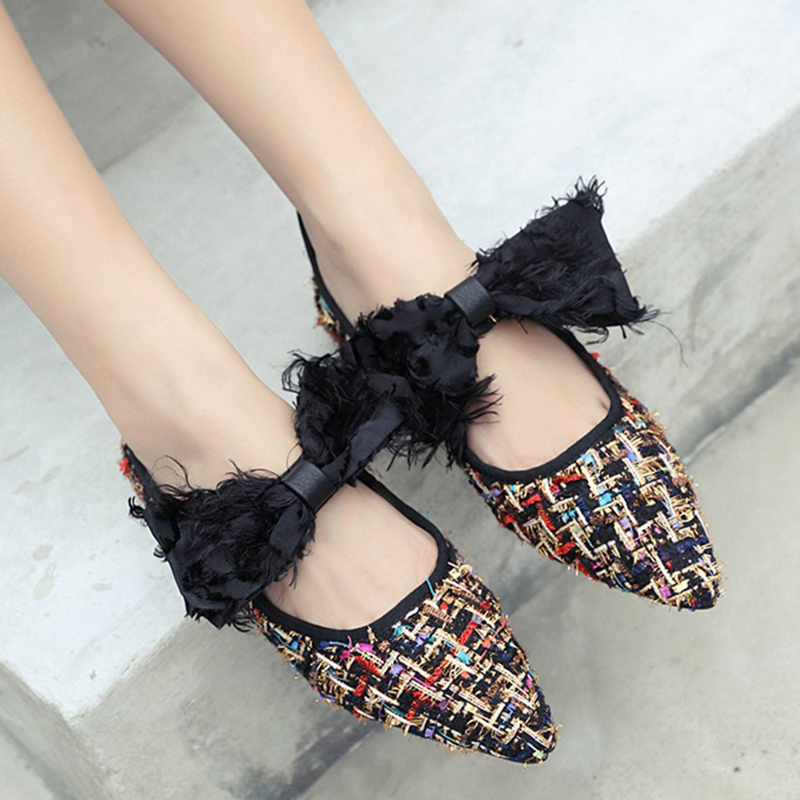 Large Size Knitting Bow Casual Flats Shoes For Women