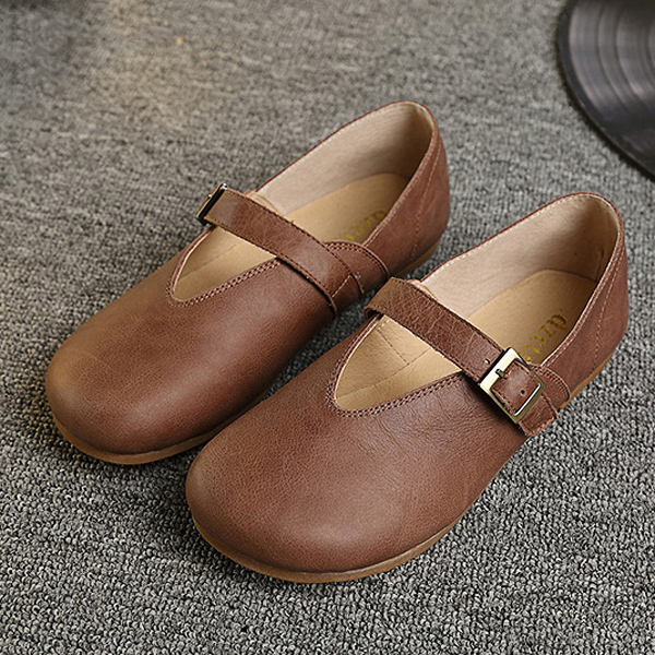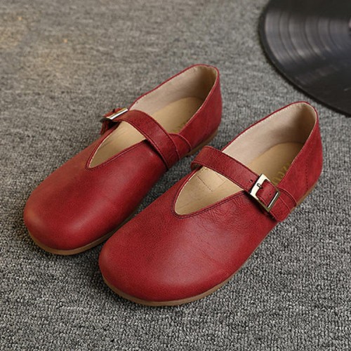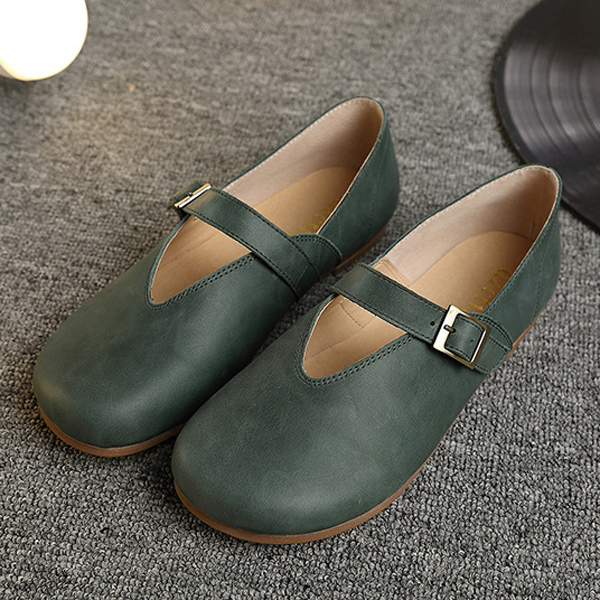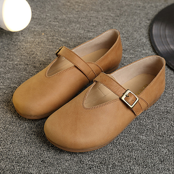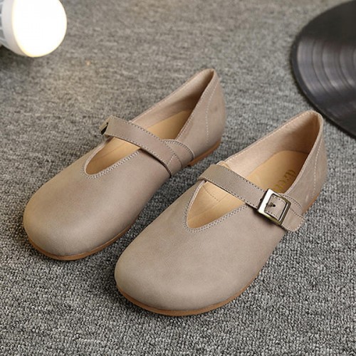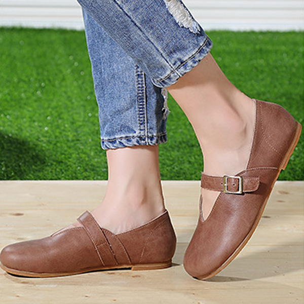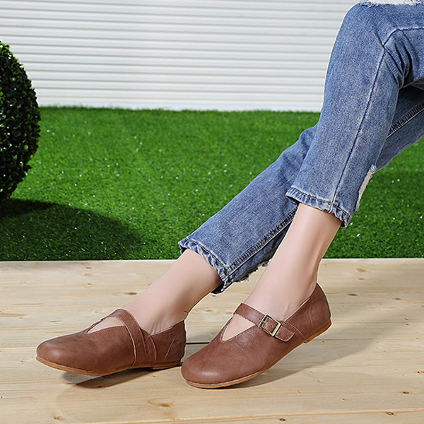 Women Flat Leather Shoes Round Toe Casual Outdoor Soft Loafers