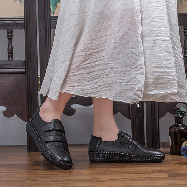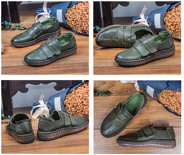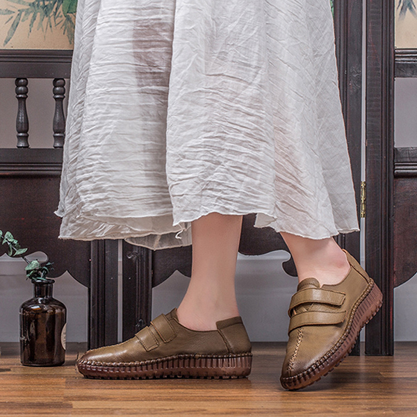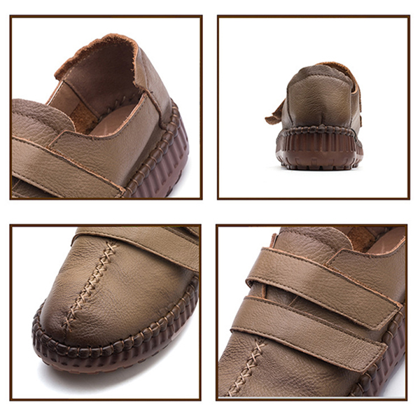 SOCOFY Hook Loop Shoe Genuine Leather Casual Comfy Loafers
