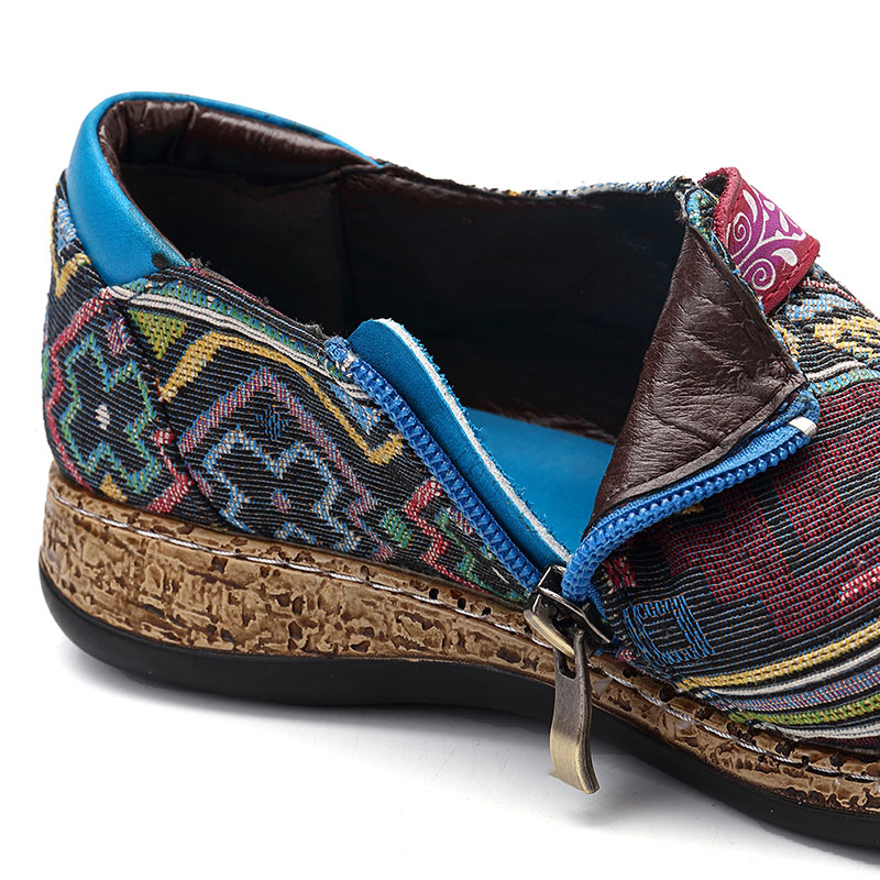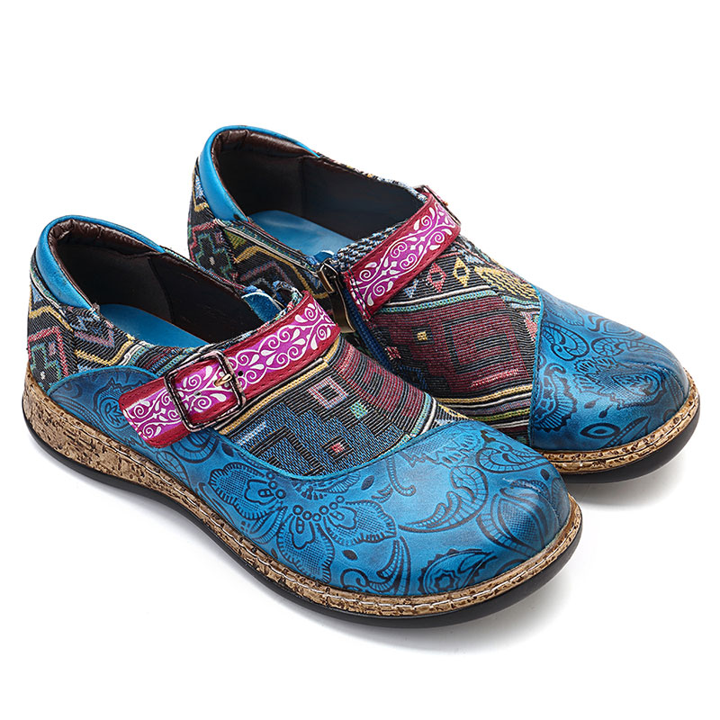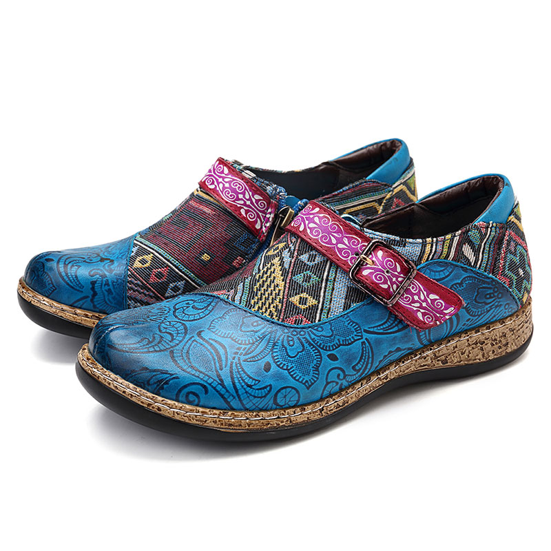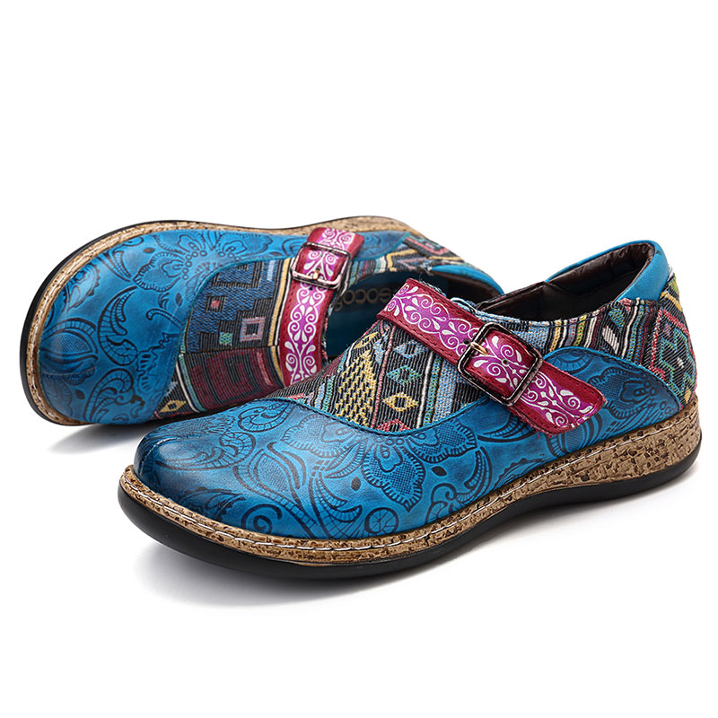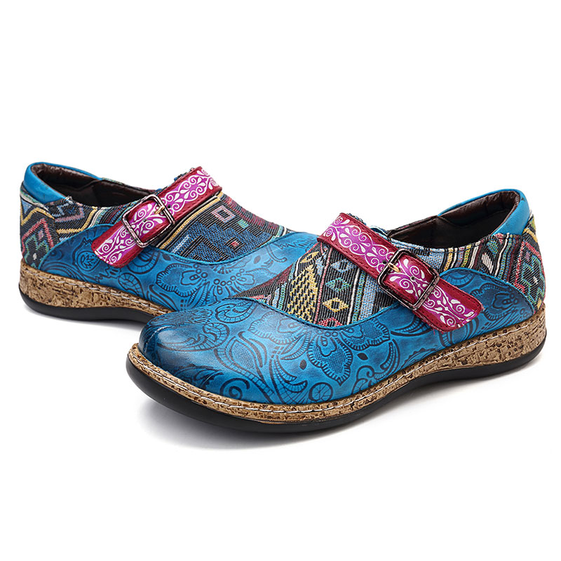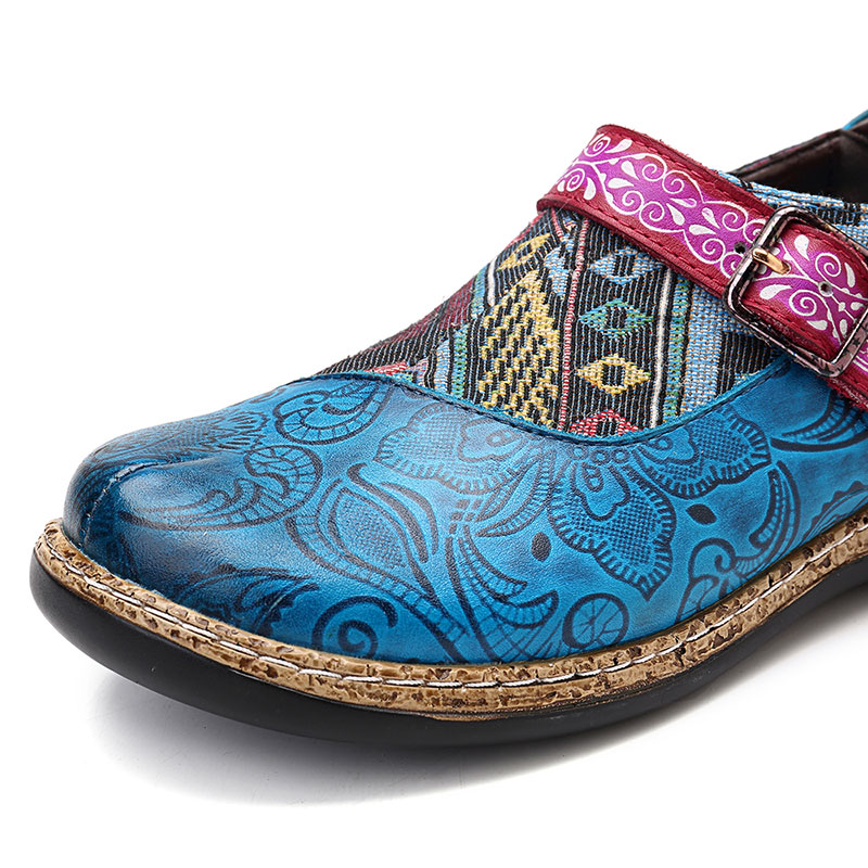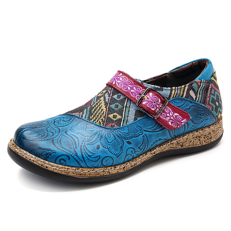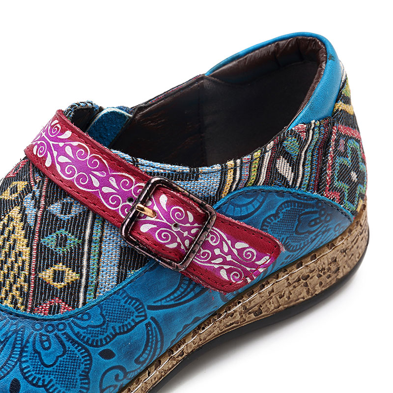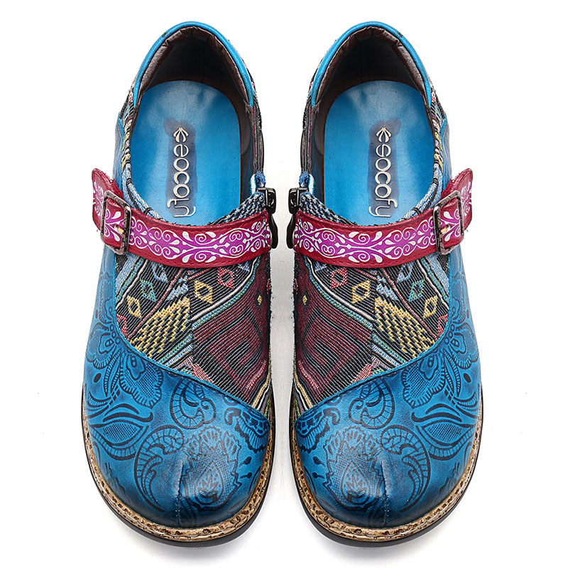 SOCOFY Folkways Splicing Pattern Genuine Leather Flats Loafers