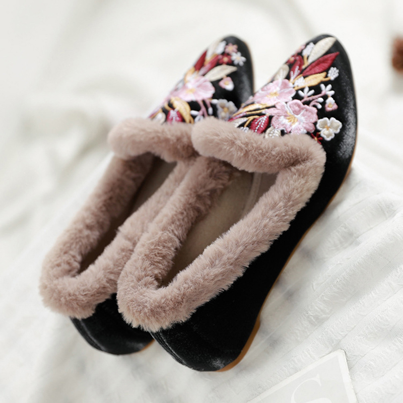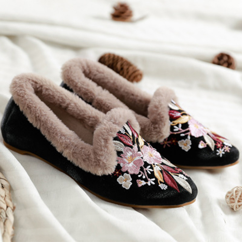 Women Embroidery Flower Flats Loafers