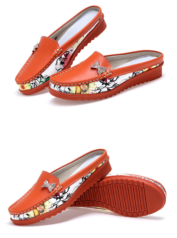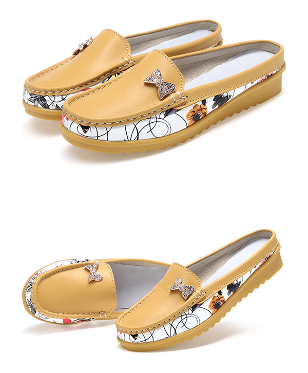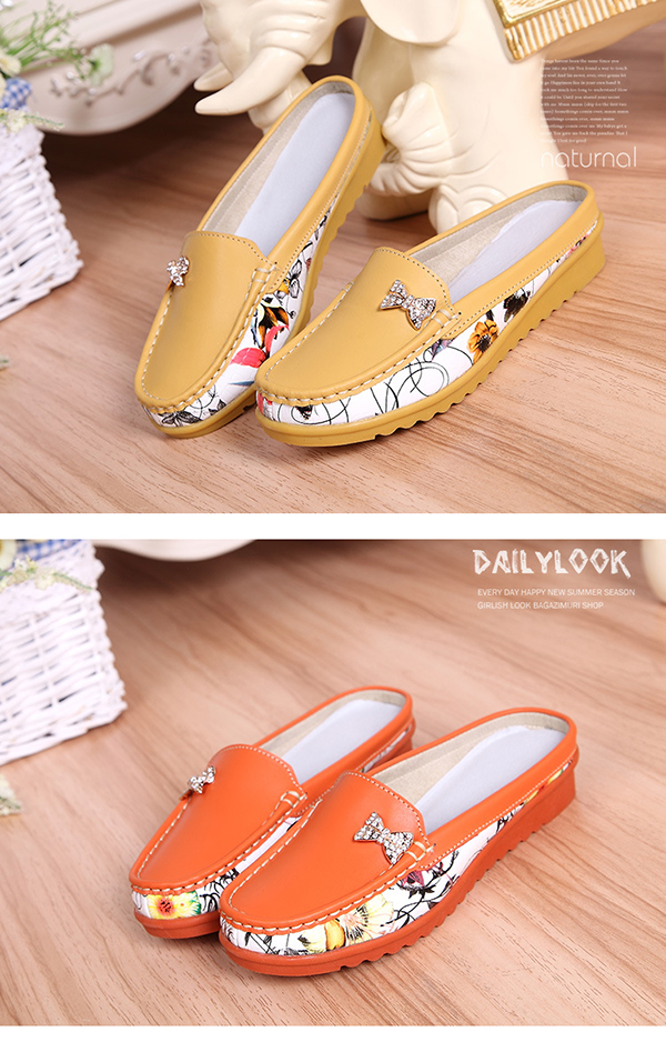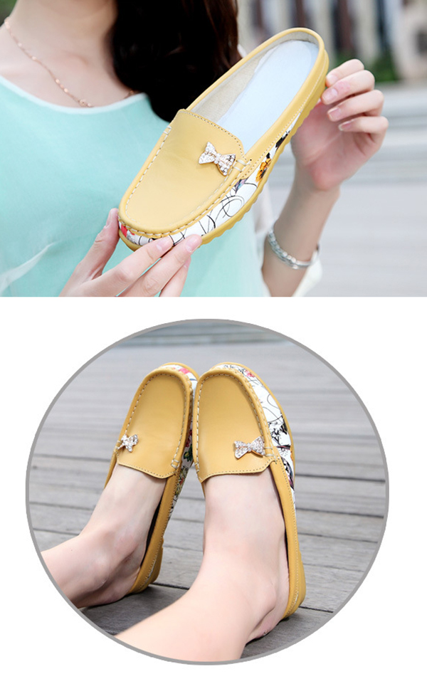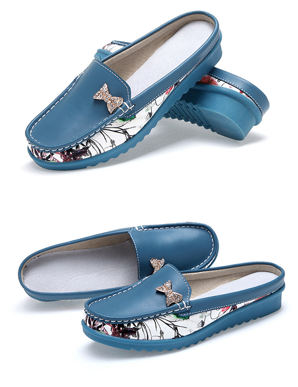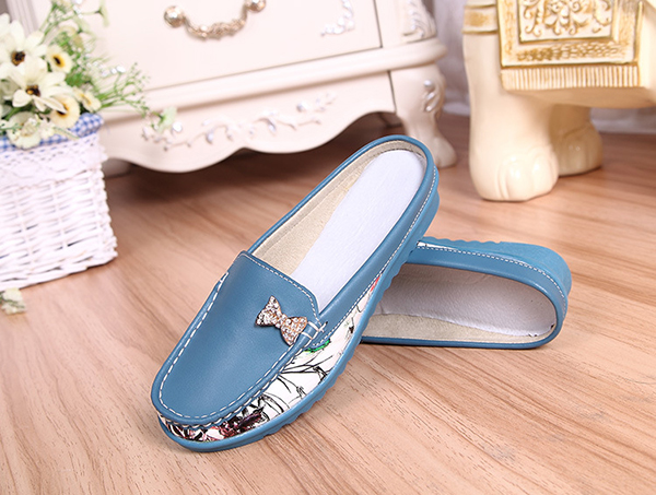 Women Flats Shoes Comfortable Slip On Casual Leather Flat Loafers Sandal Slipper Shoes