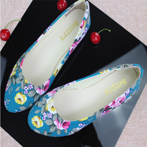 US Size 5-11 Shoes Women Flower Flats Casual Outdoor Canvas Pointed Toe Soft Comfortable Flats Shoes