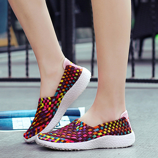 Women Hollow Out Casual Slip On Knitting Outdoor Shoes