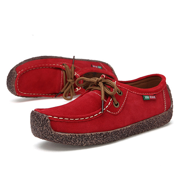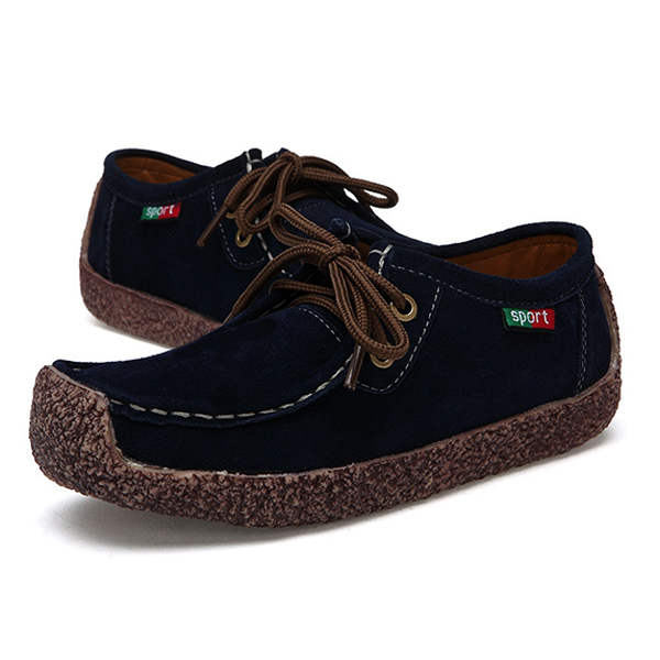US Size 5-11 Women Suede Casual Outdoor Lace Up Comfy Flat Shoes