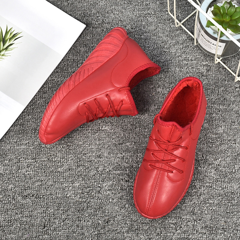 Red Color Comfy Lace Up Sneakers Casual Shoes