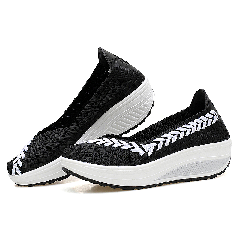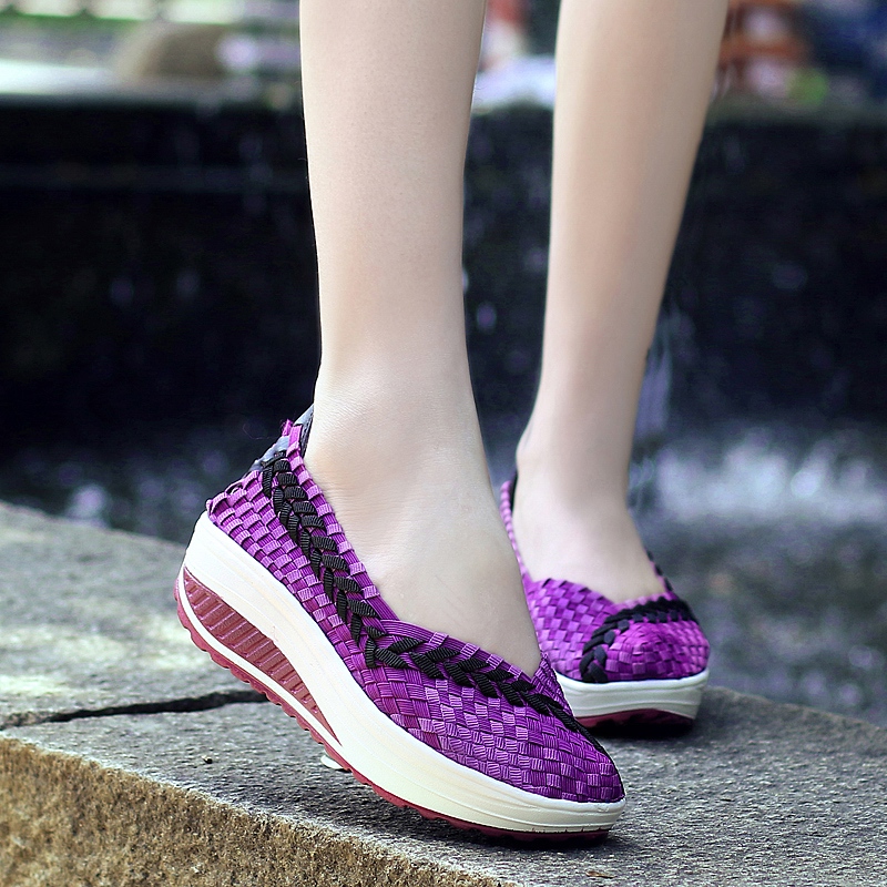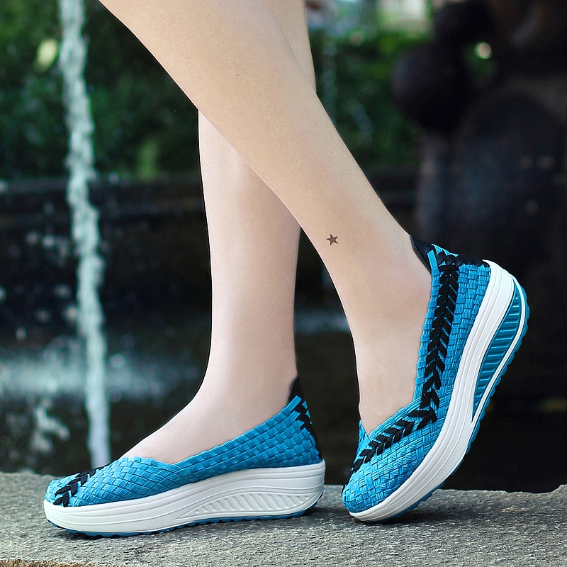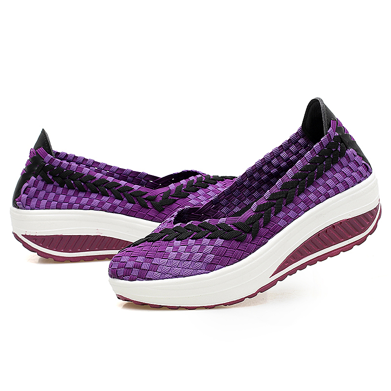 Colorful Knitted Slip On Rocker Sole Shoes For Women