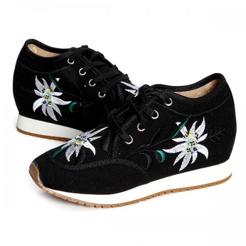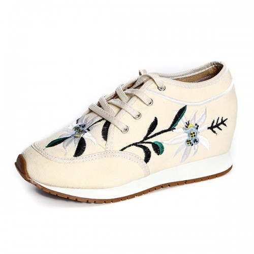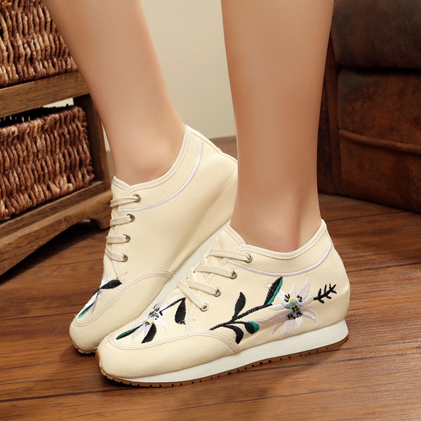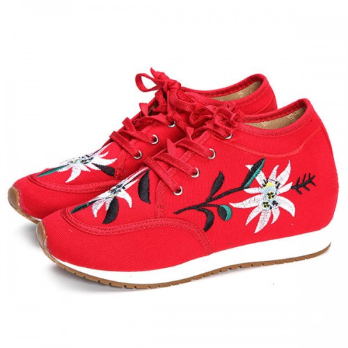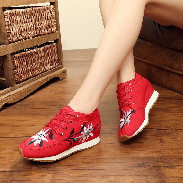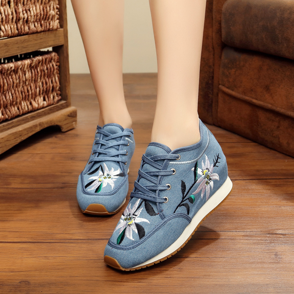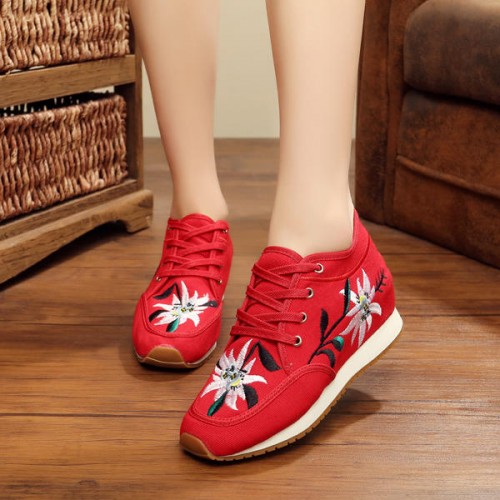 Chinese Embroidered Lace Up Casual Round Toe Shoes