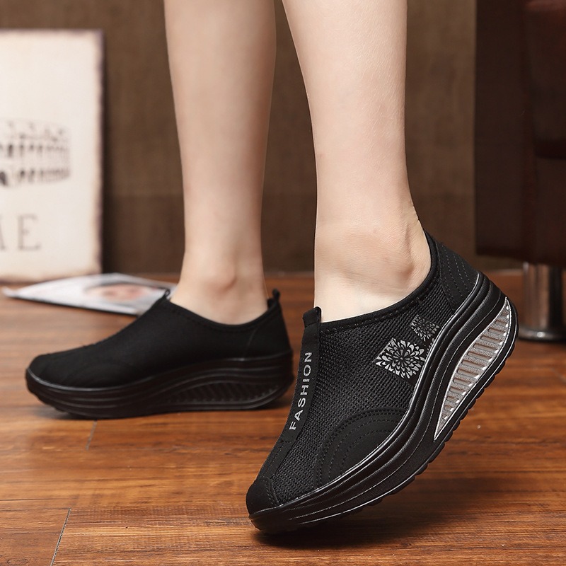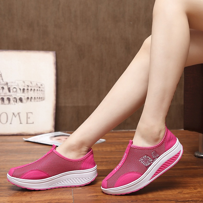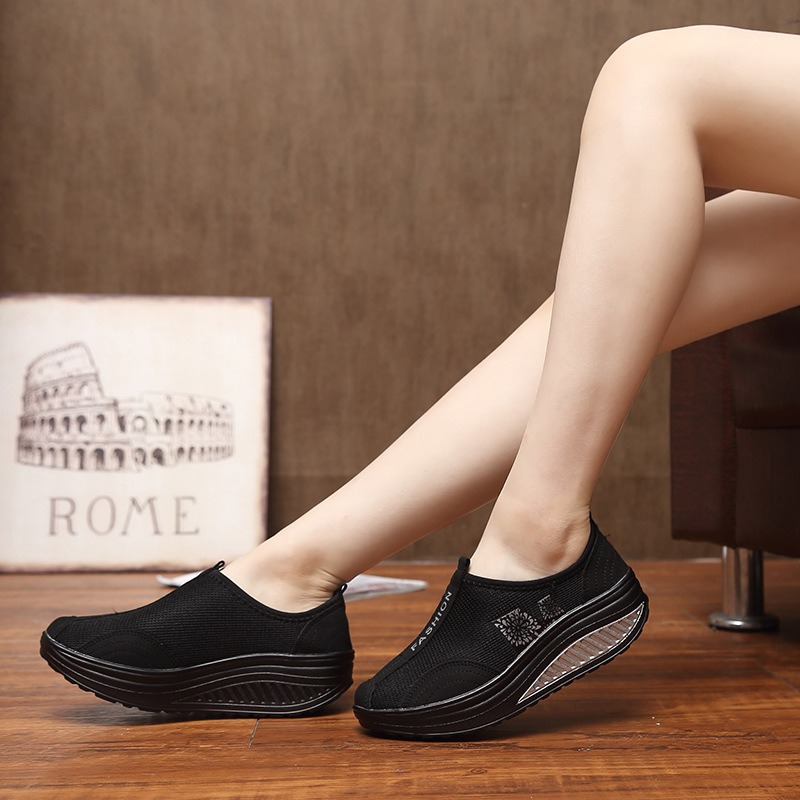 Mesh Breathable Rocker Sole Shoes Slip On Sneakers