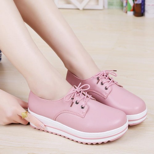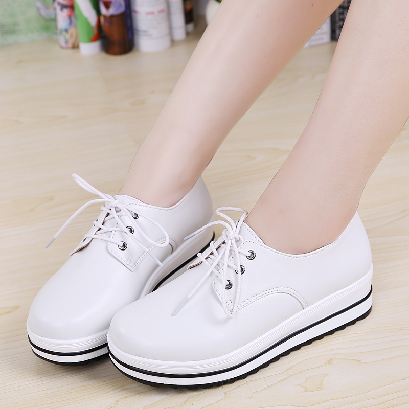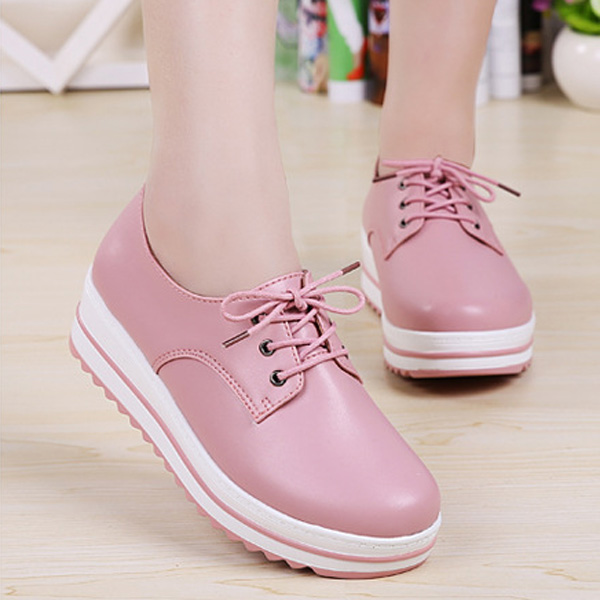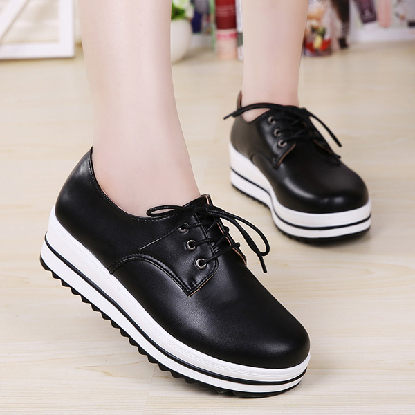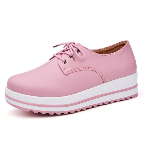 Lace Up Platform Heels Sneakers Round Toe Soft Sole Shoes