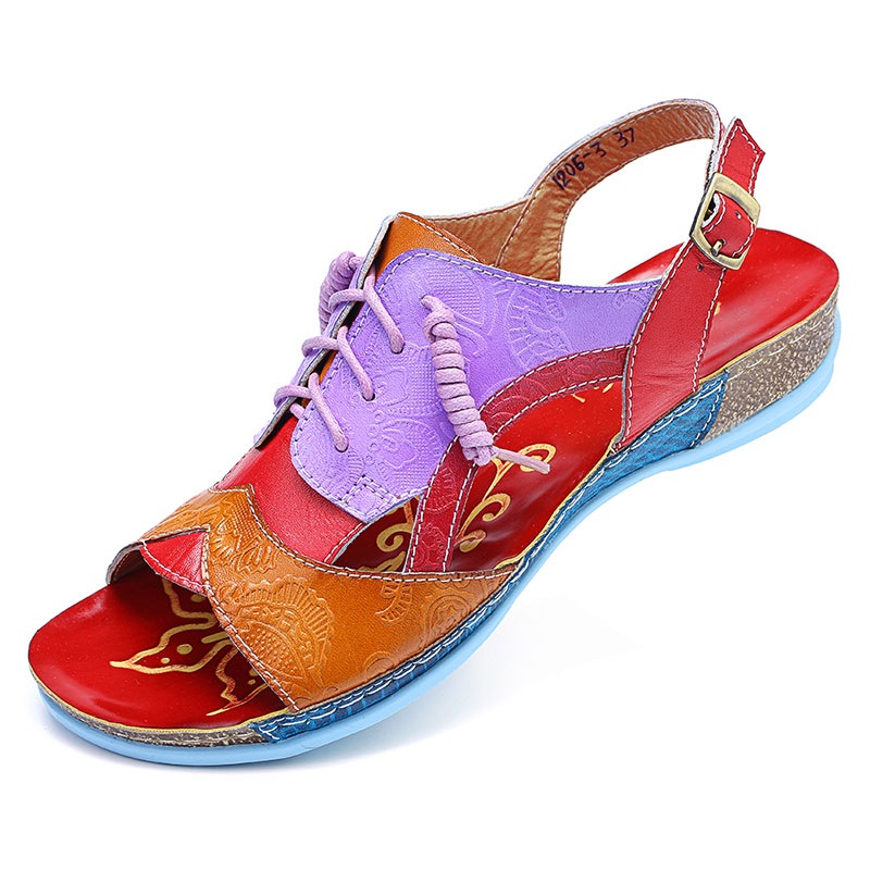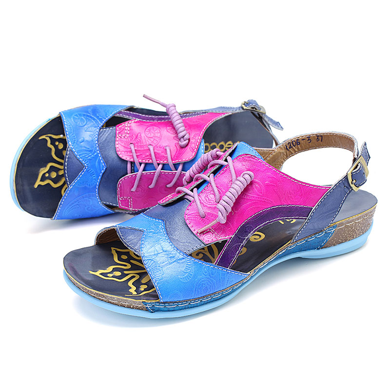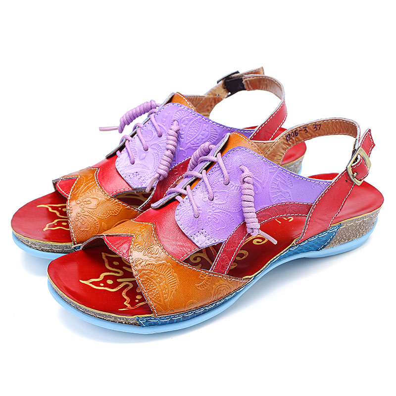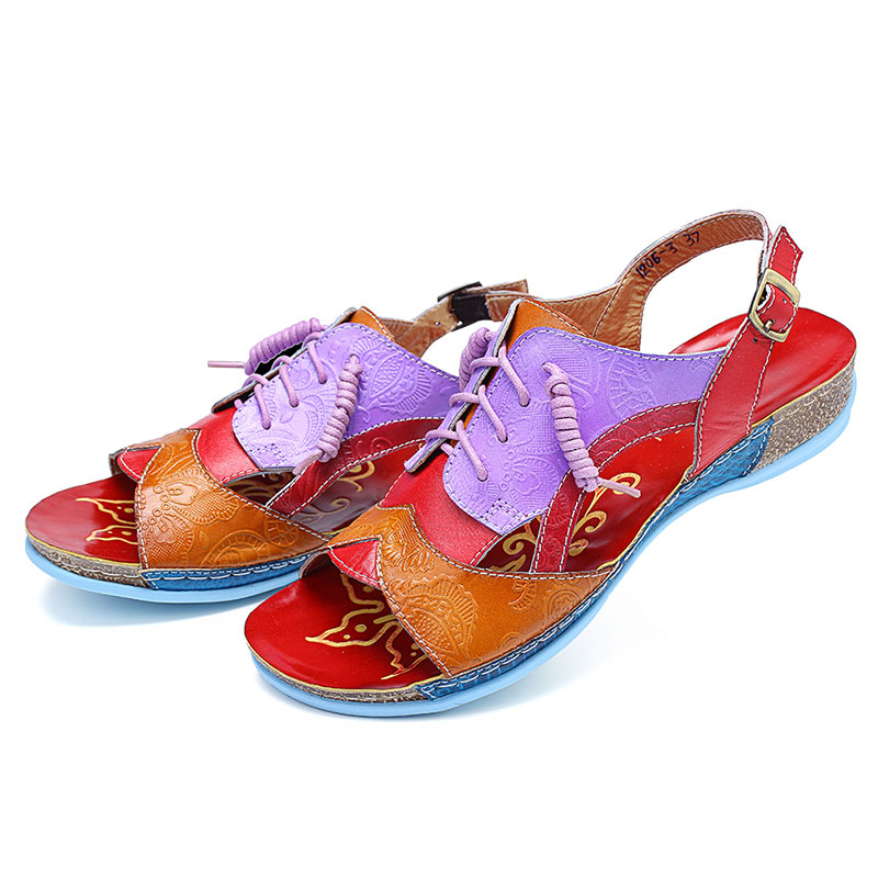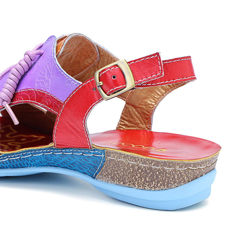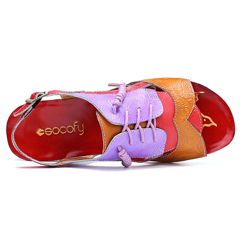 SOCOFY Handmade Stitching Buckle Genuine Leather Wedge Sandals