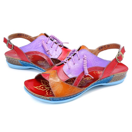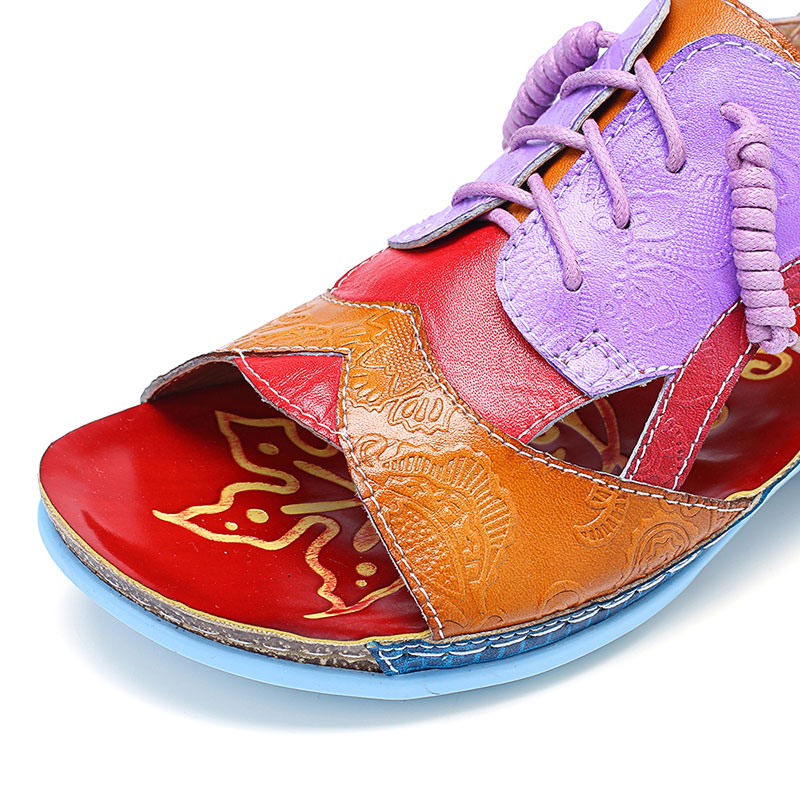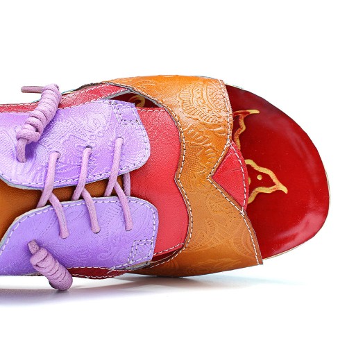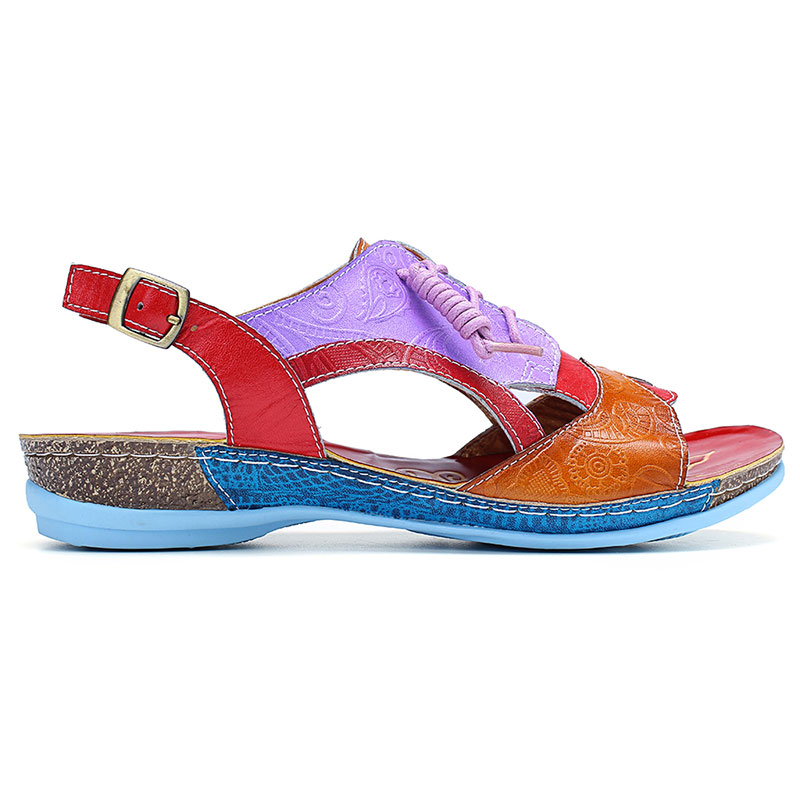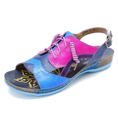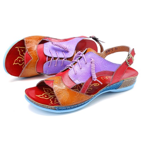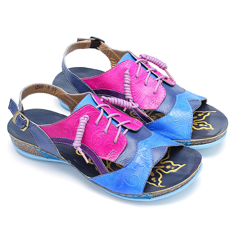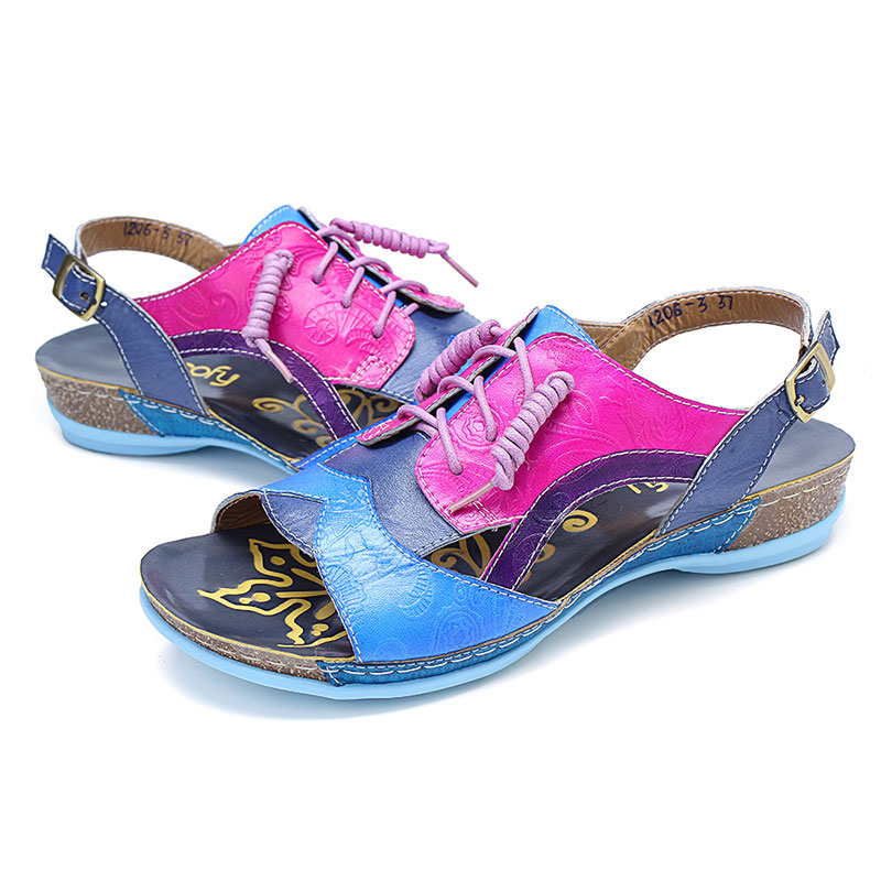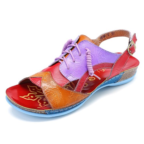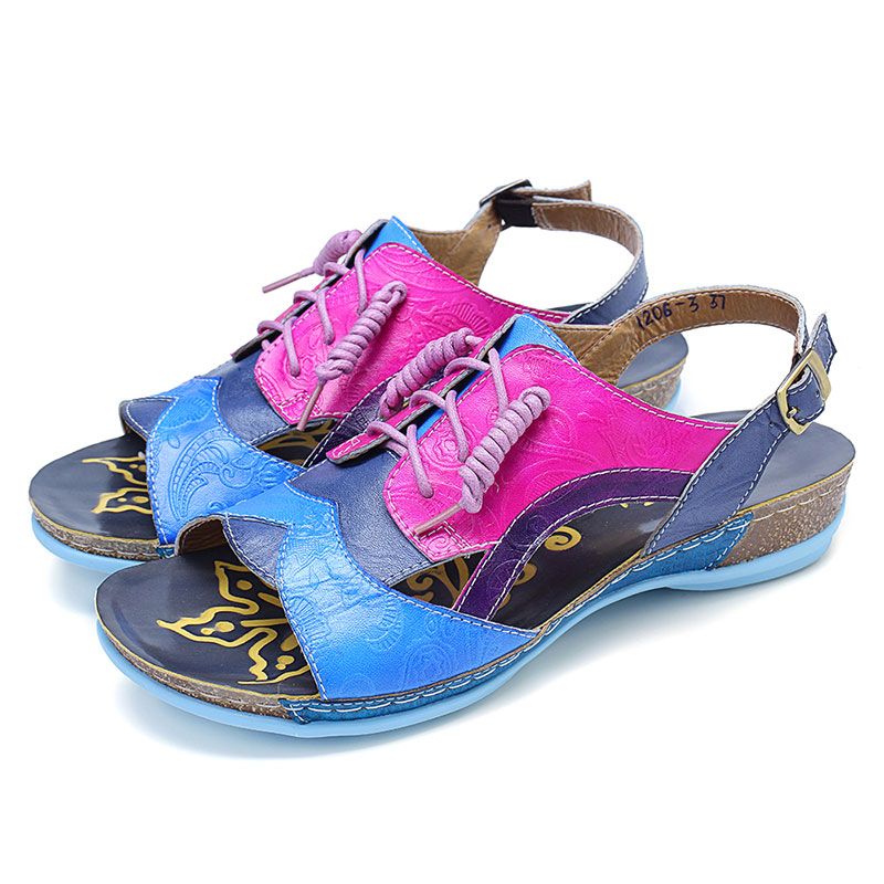 SOCOFY Handmade Stitching Buckle Genuine Leather Wedge Sandals