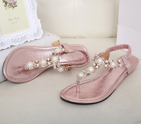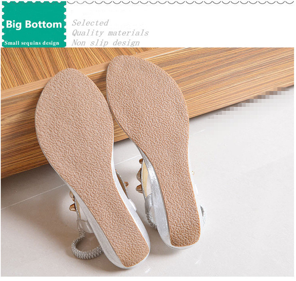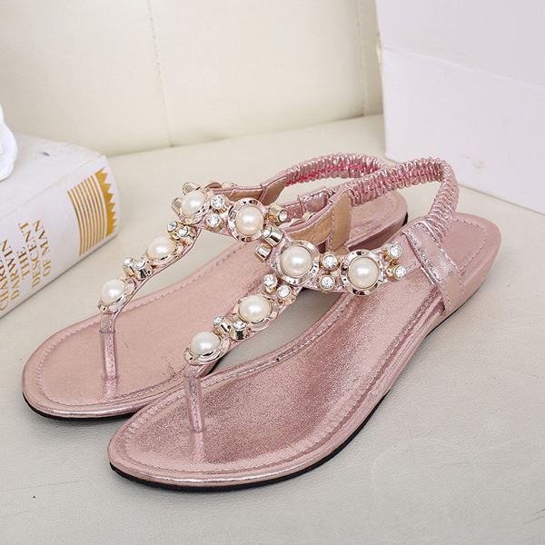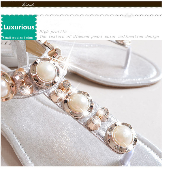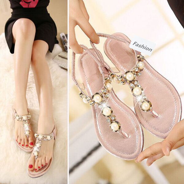 Women Sandal Shoes Flip Flops Strap Flat Strappy Rhinestone Sandals