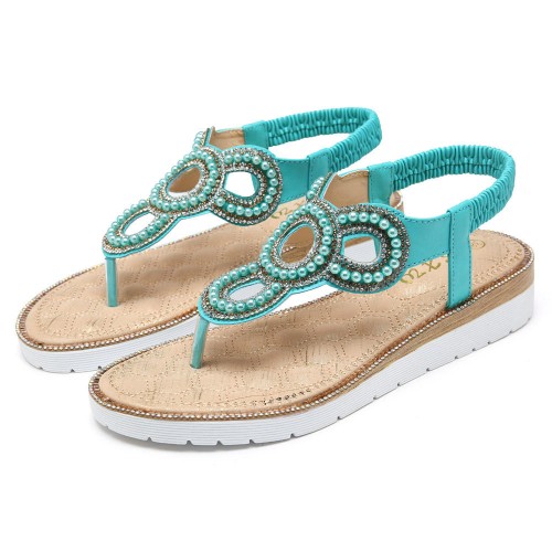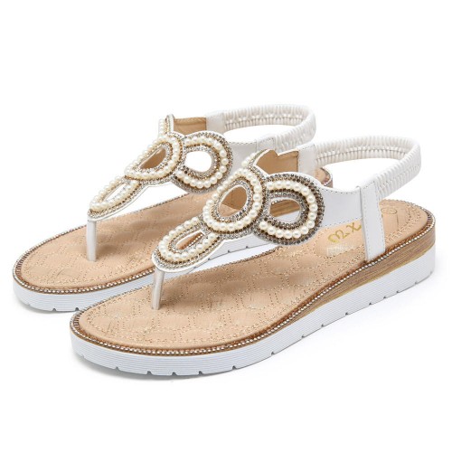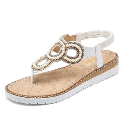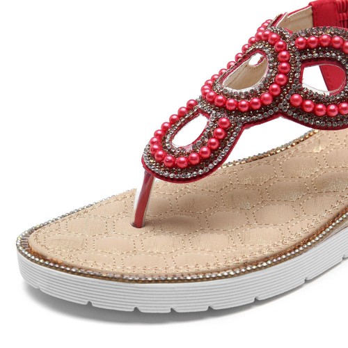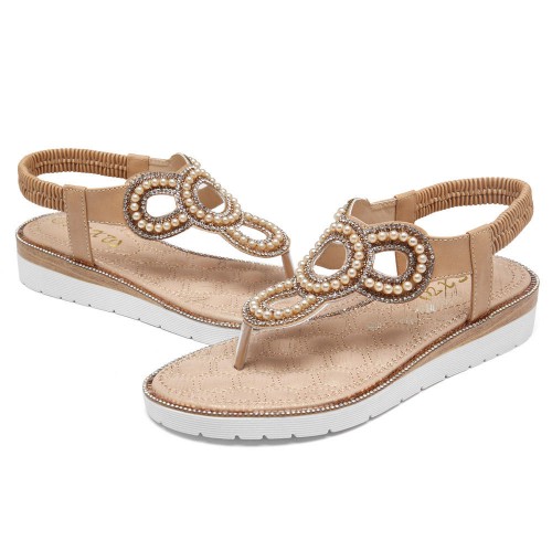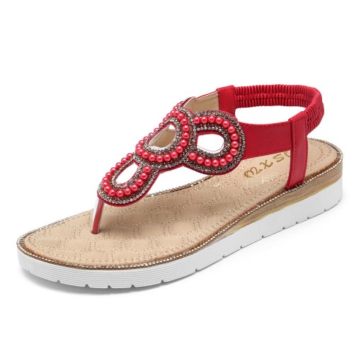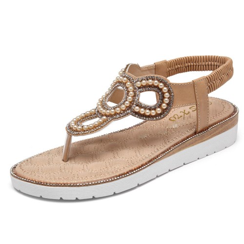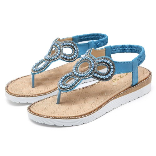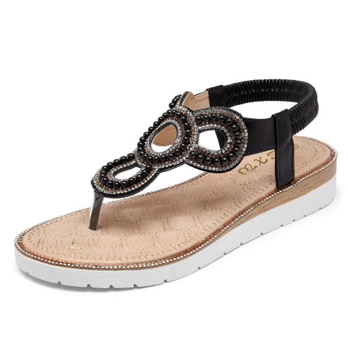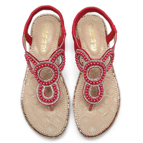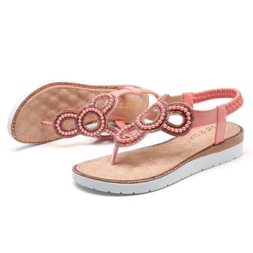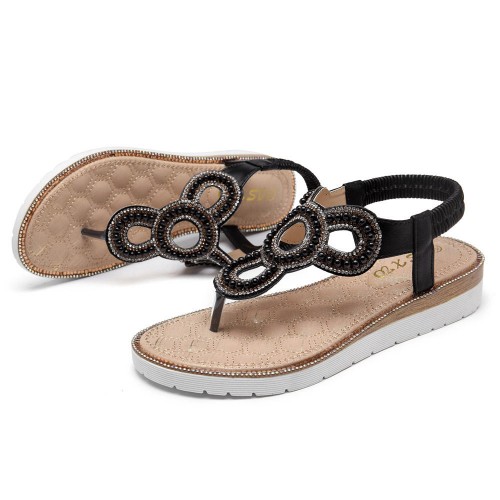 Bohemian Rhinestone Bead Flat Sandals Casual Holiday Lady Sandals