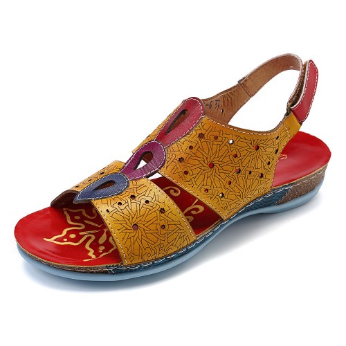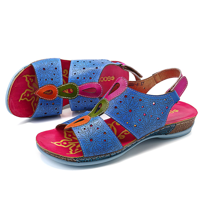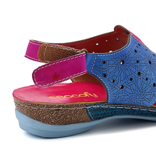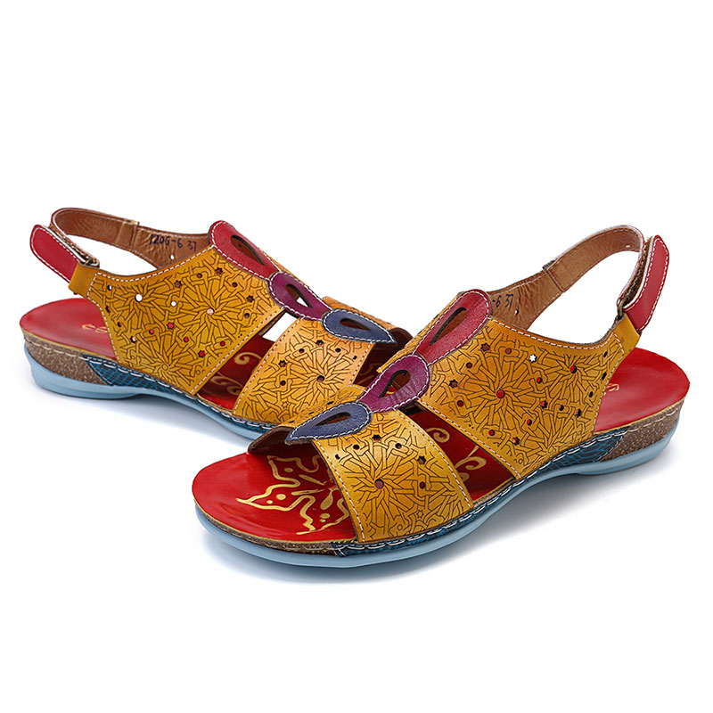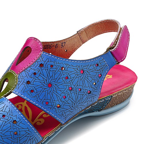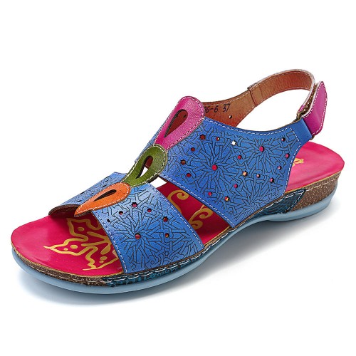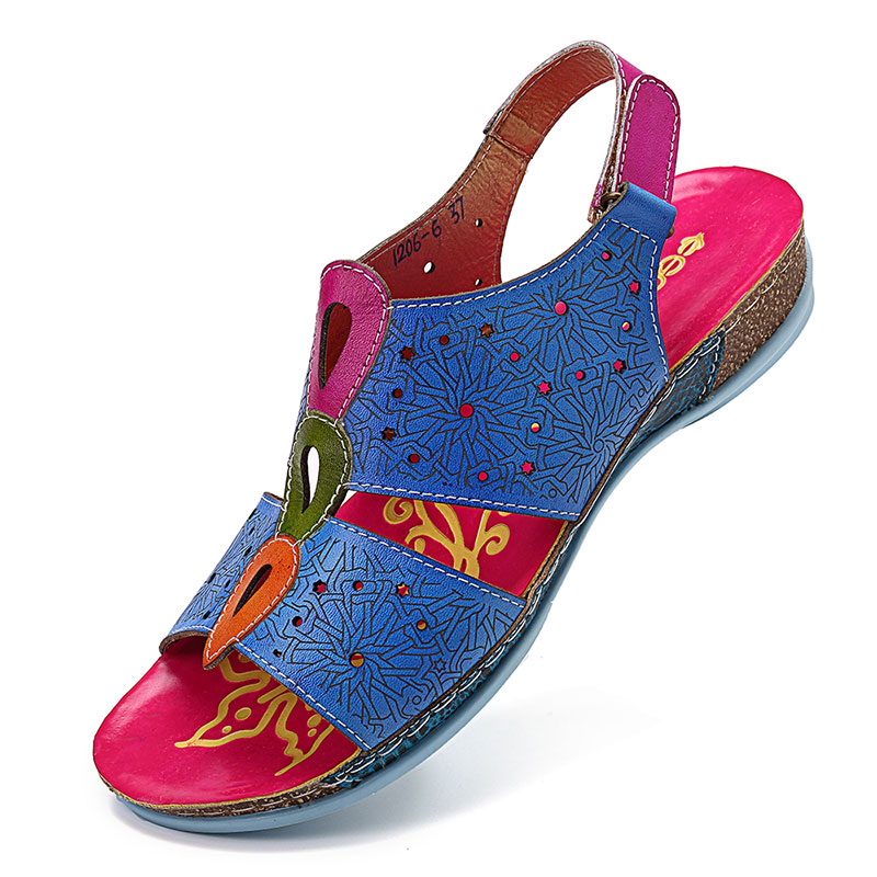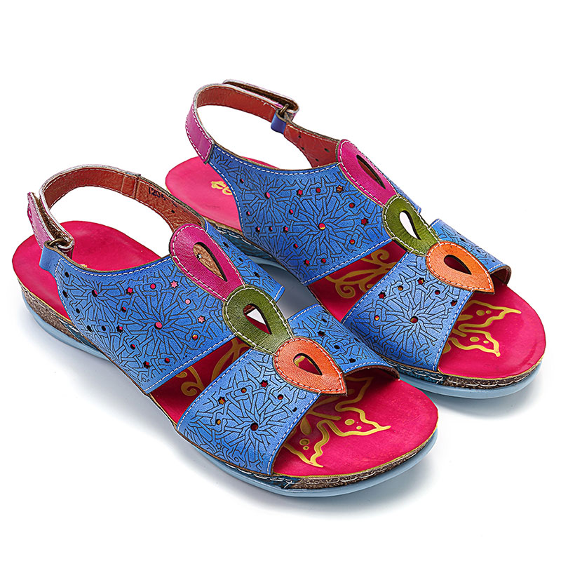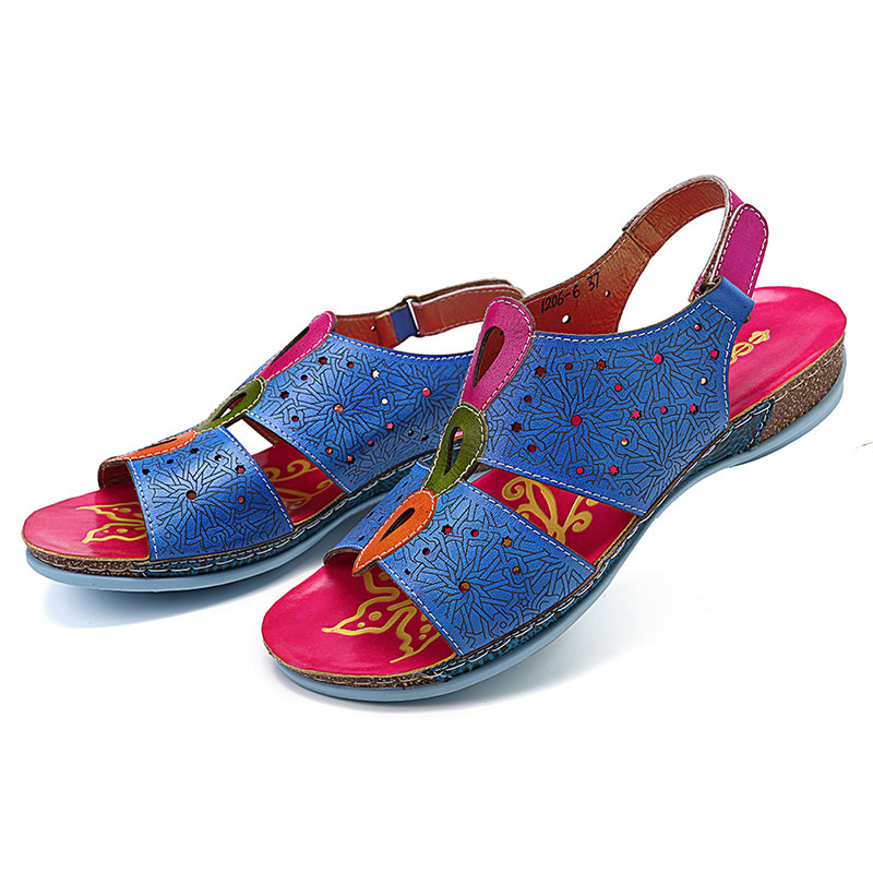 SOCOFY Splicing Hollow Casual Hook Loop Genuine Leather Sandals