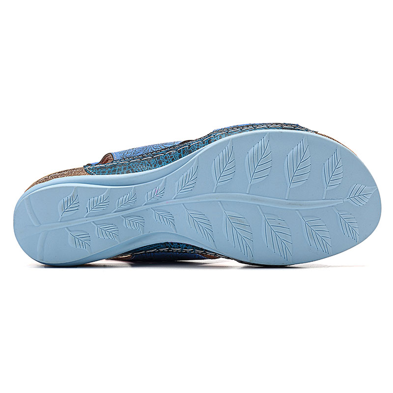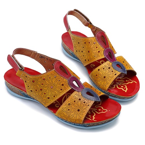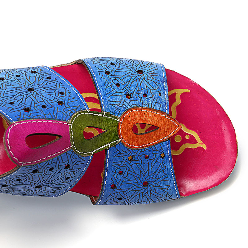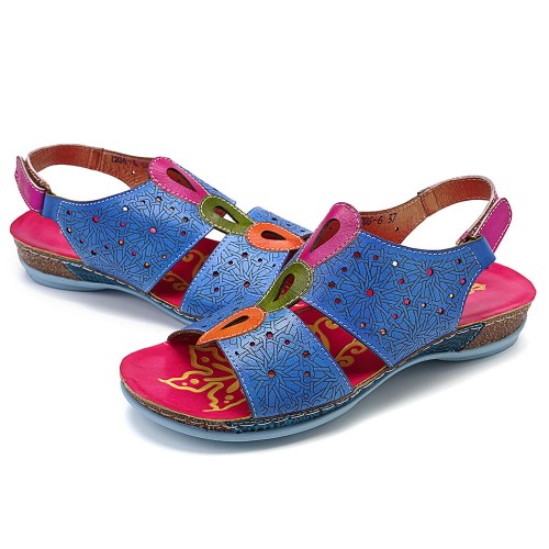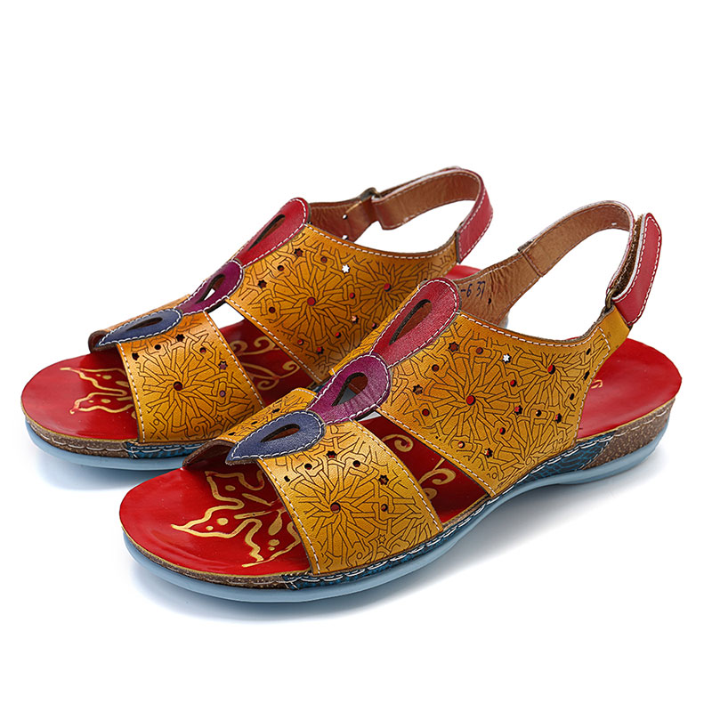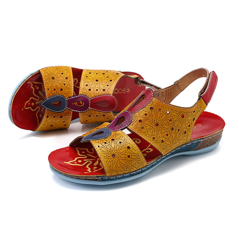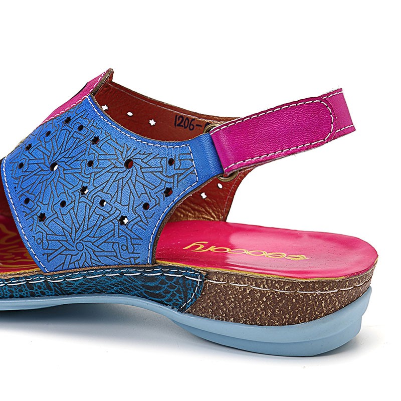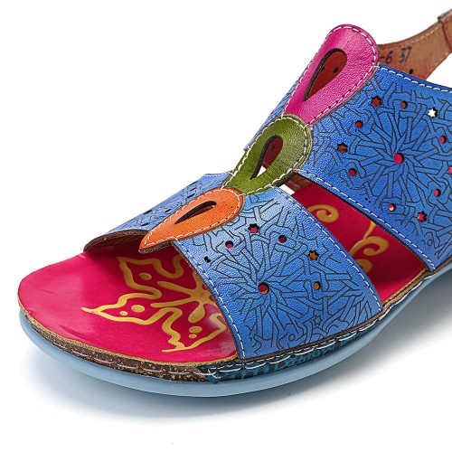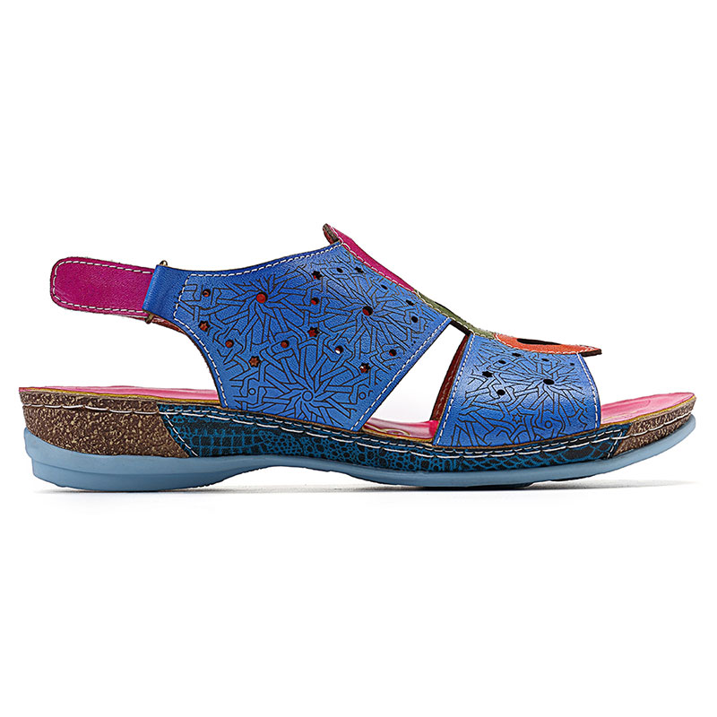 SOCOFY Splicing Hollow Casual Hook Loop Genuine Leather Sandals