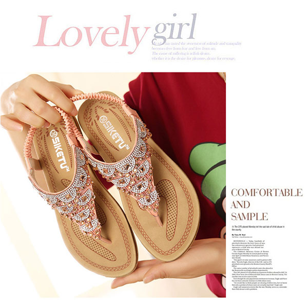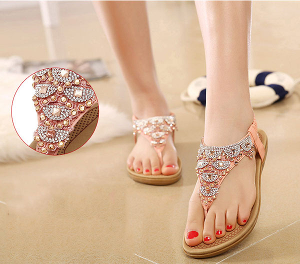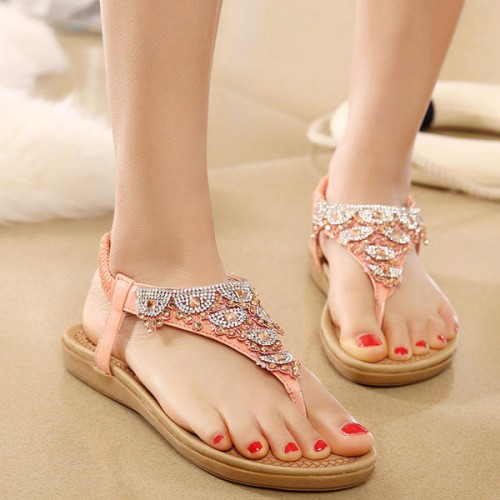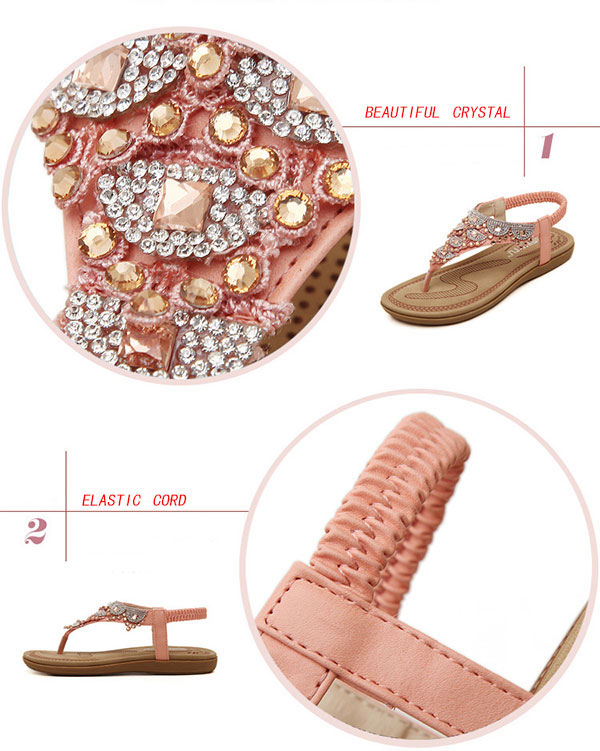 Crystal Bohemia Clip Toe Elastic Flat Sandals