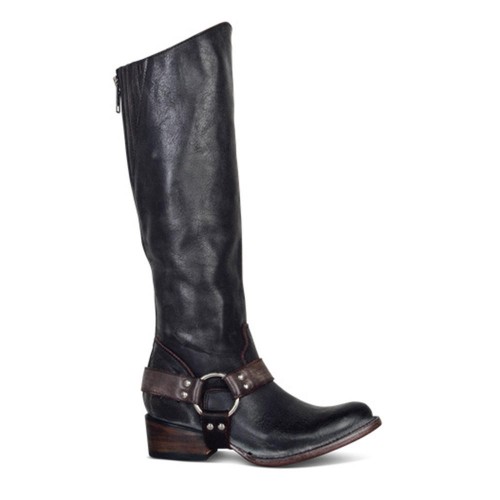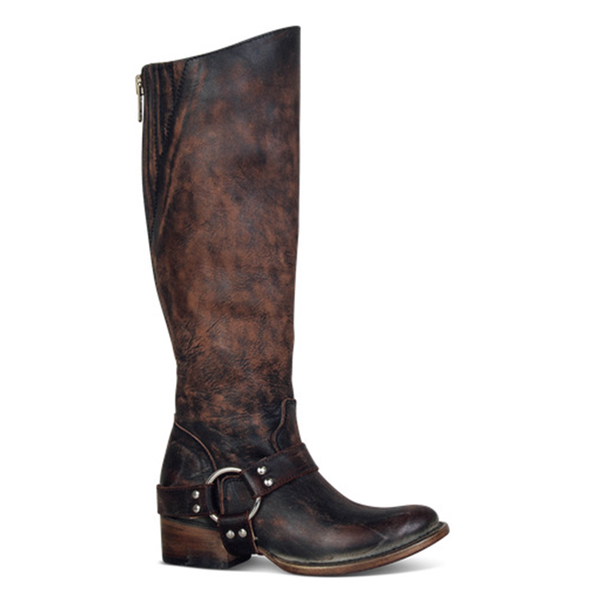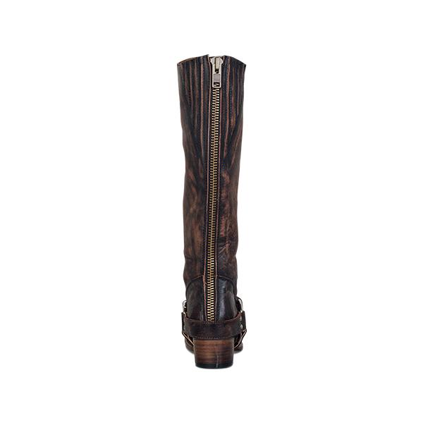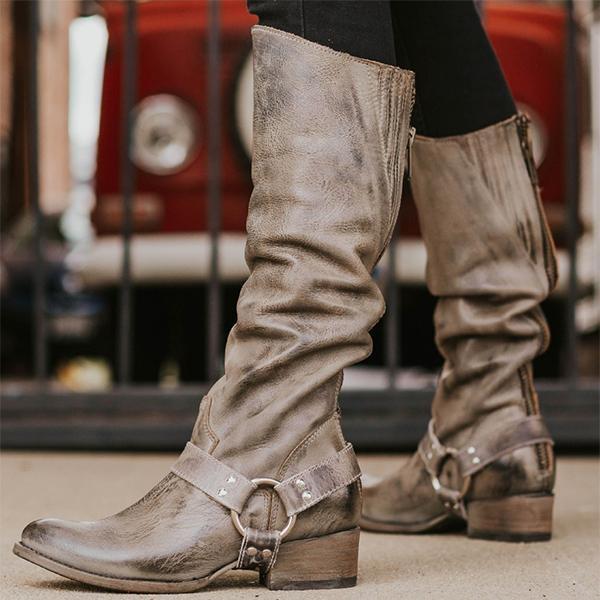 Women Retro Zipper Ring Belt Buckle Motorcycle Boots