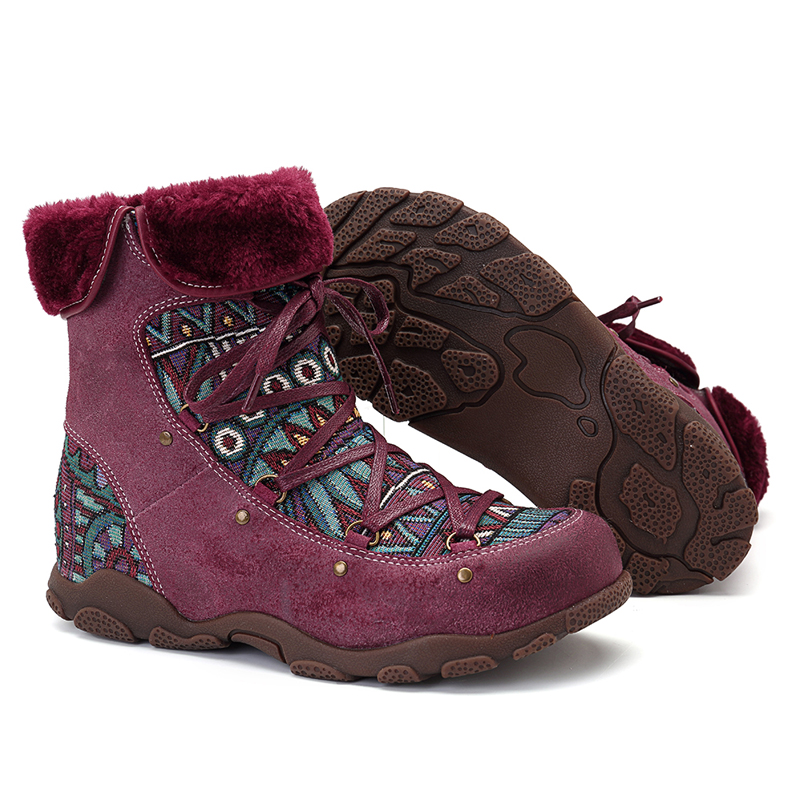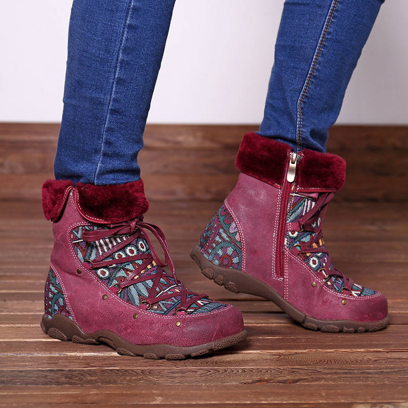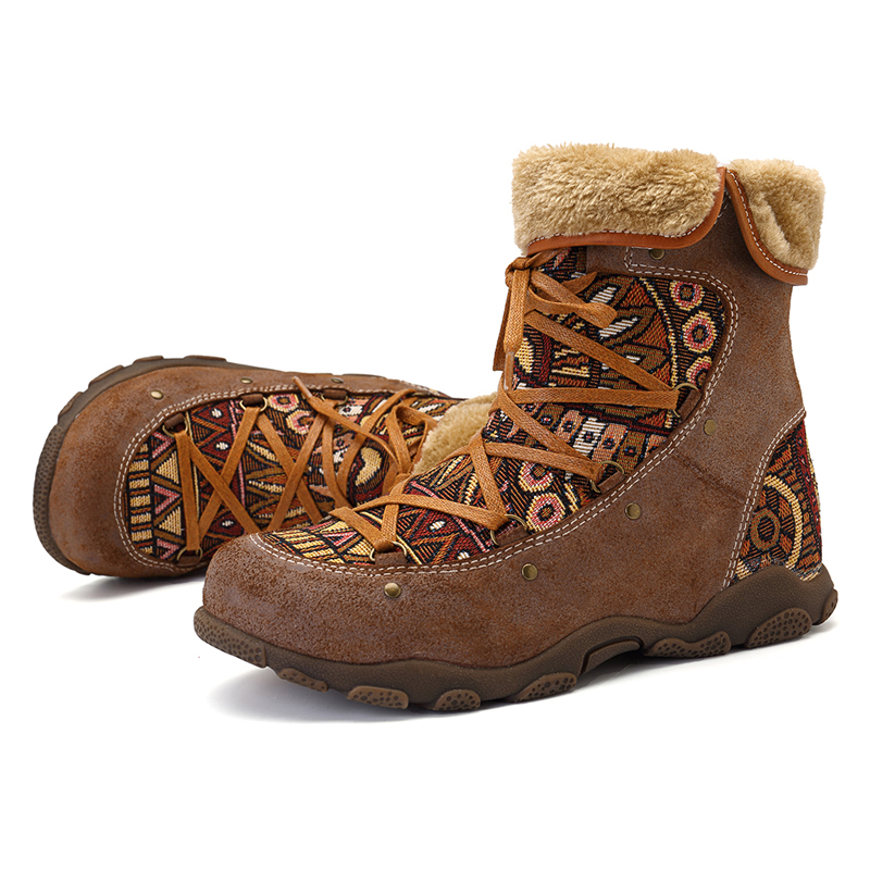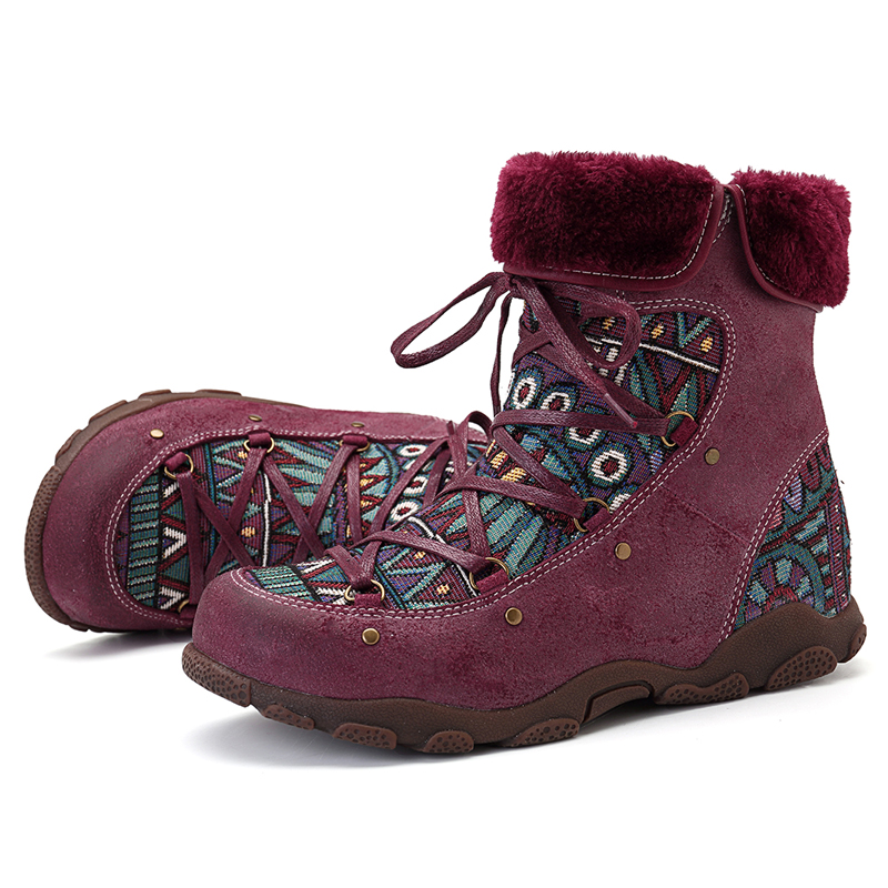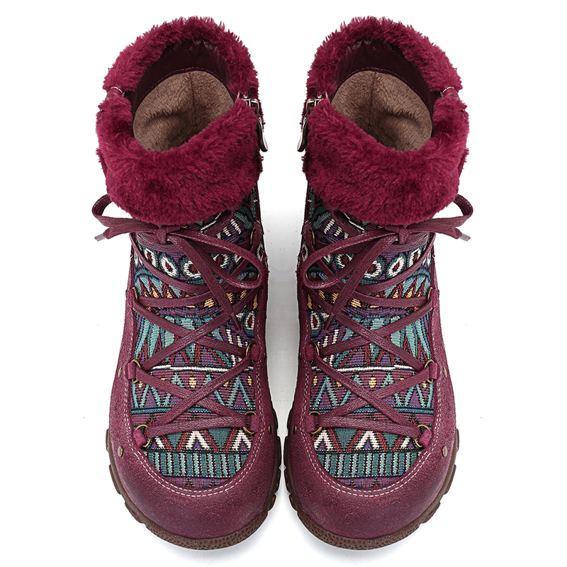 SOCOFY Genuine Leather Splicing Jacquard Pattern Zipper Ankle Boots
