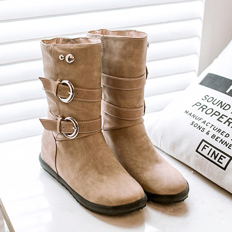 Women Casual Comfortable Double Breasted Mid-calf Boots