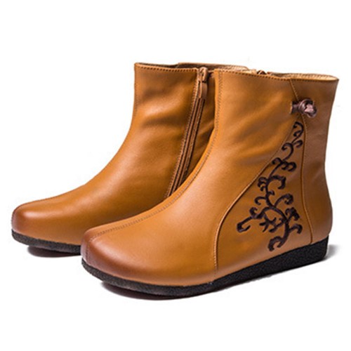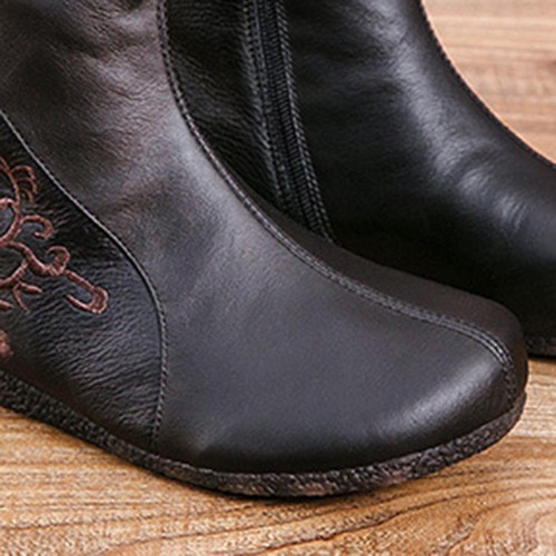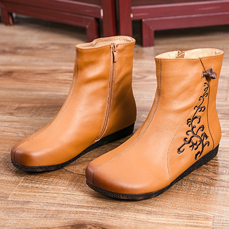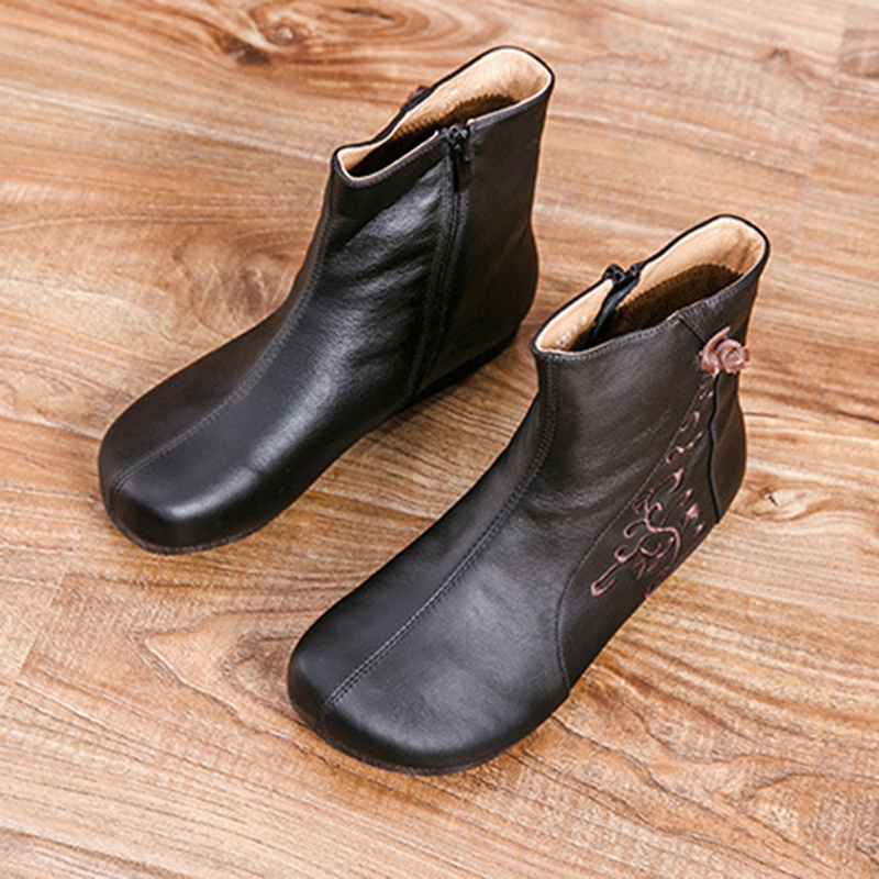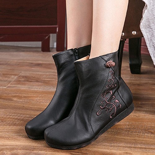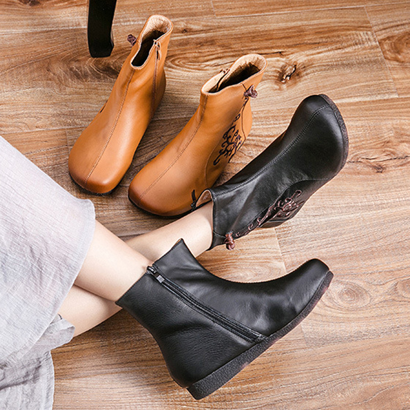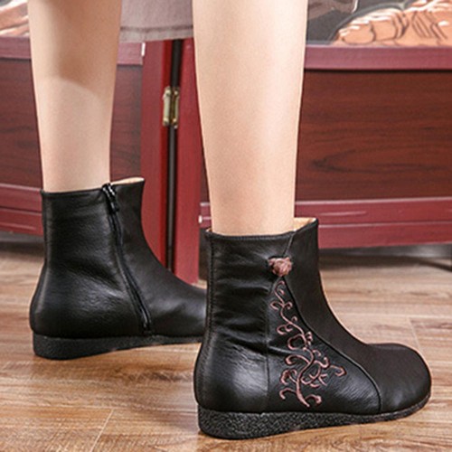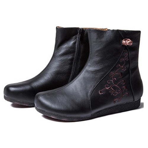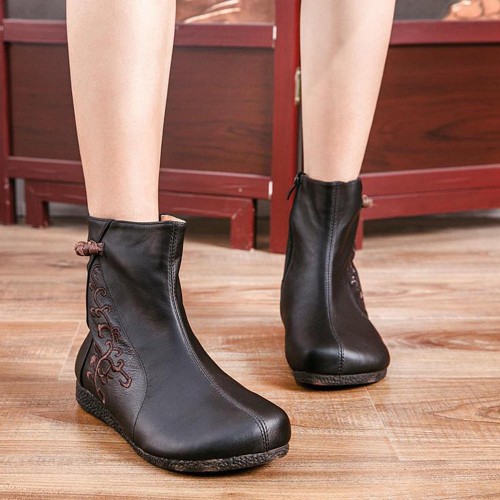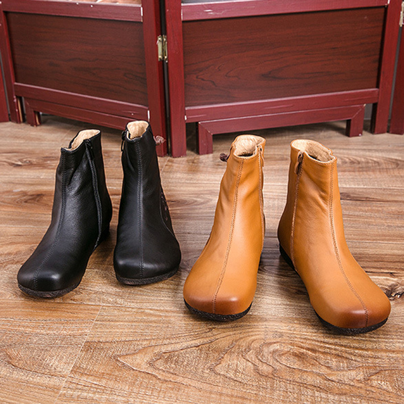 Retro Round Toe Genuine Leather Soft Warm Ankle Boots