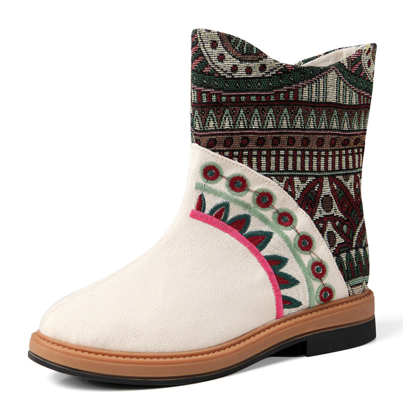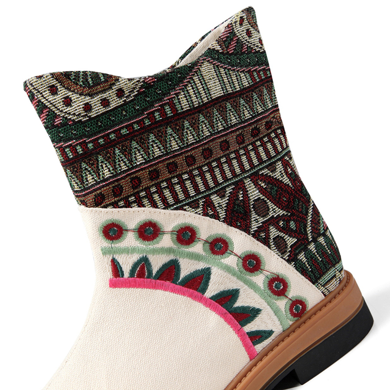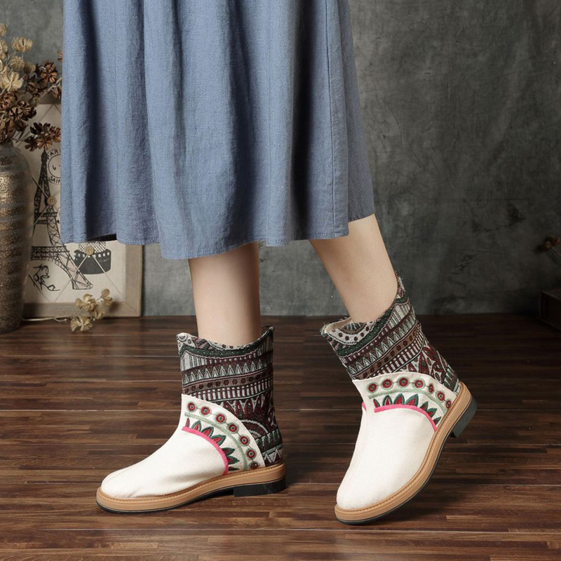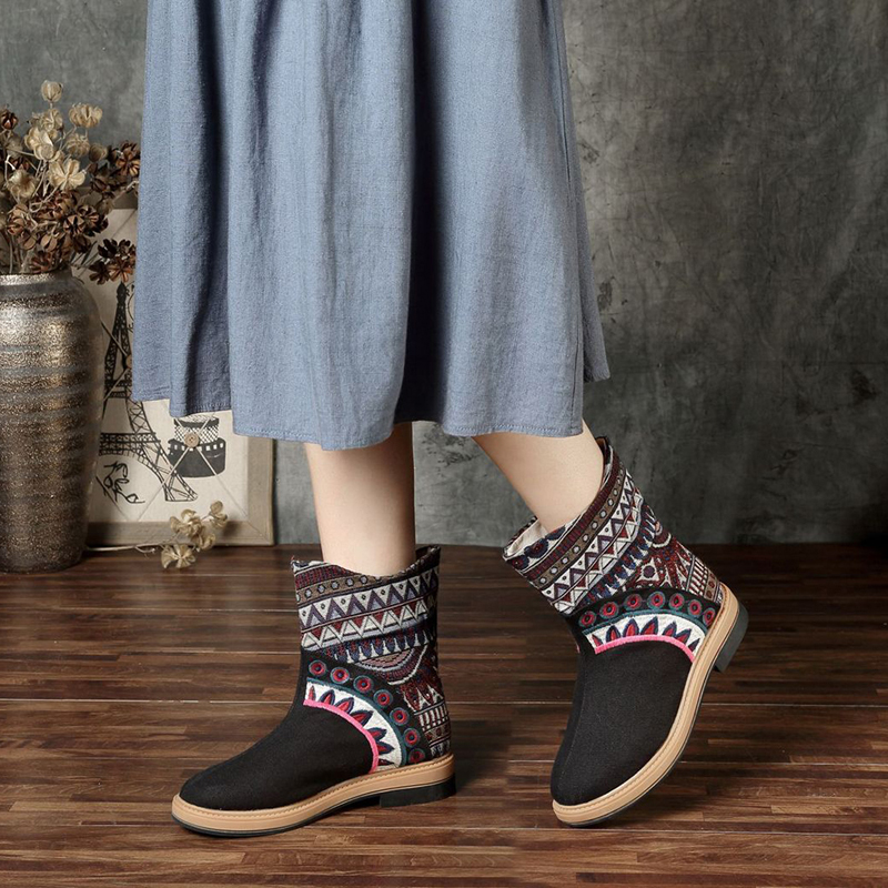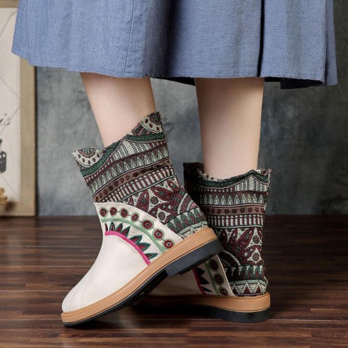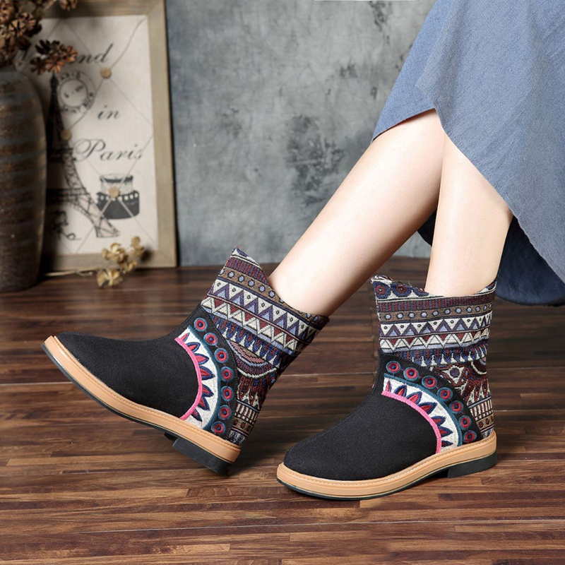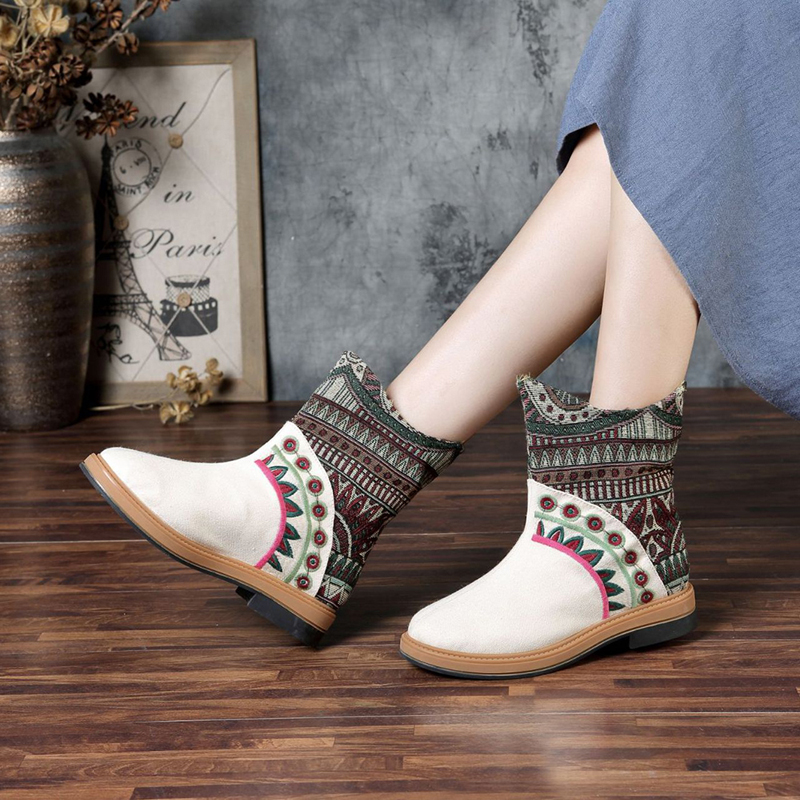 Women Folkways Stitching Pattern Casual Mid-calf Boots