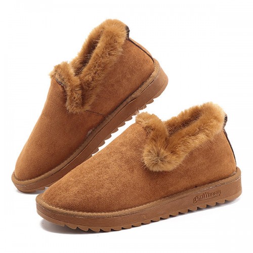 Women Cotton Shoes Keep Warm Slip On Fluffy Casual Flats