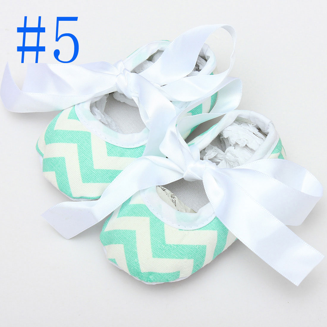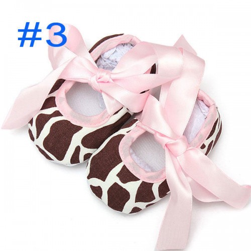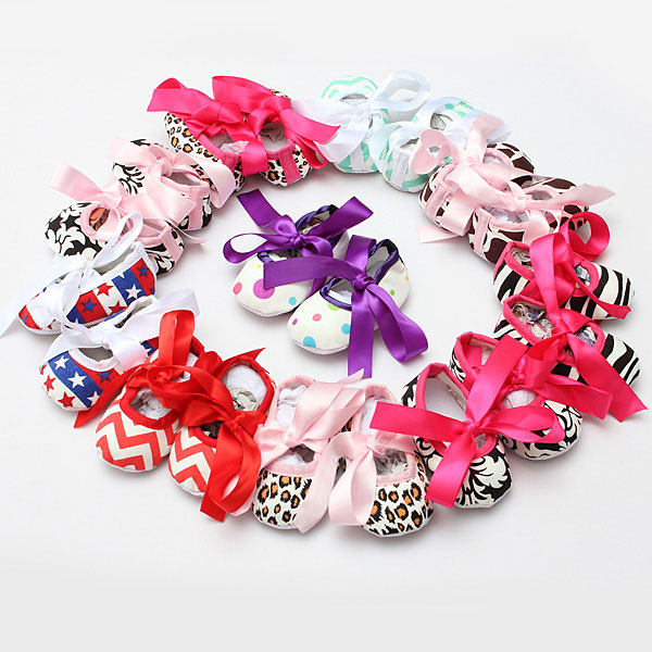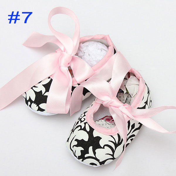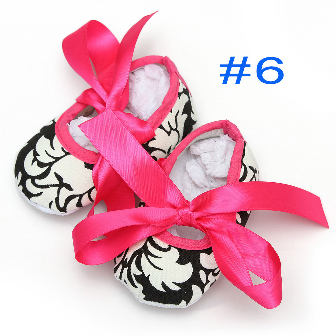 Baby Girls Cotton Crib Shoes Soft Sole Printed Damask Bow 0-18M