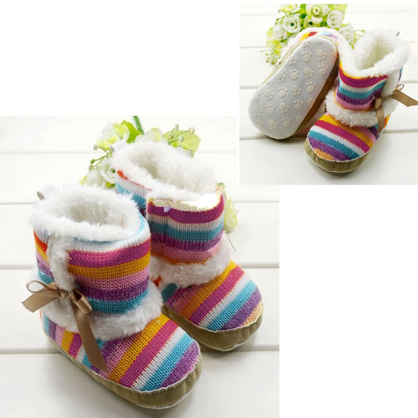 Baby Girls Toddler Velvet Rainbow Soft Sole Boots Shoes