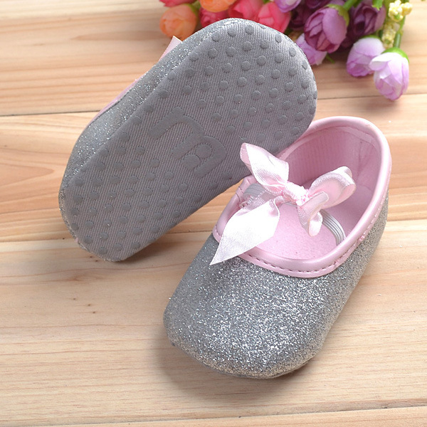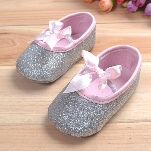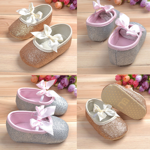 Baby Girls Shiny Bling Ribbon Soft Sole First Walking Shoes