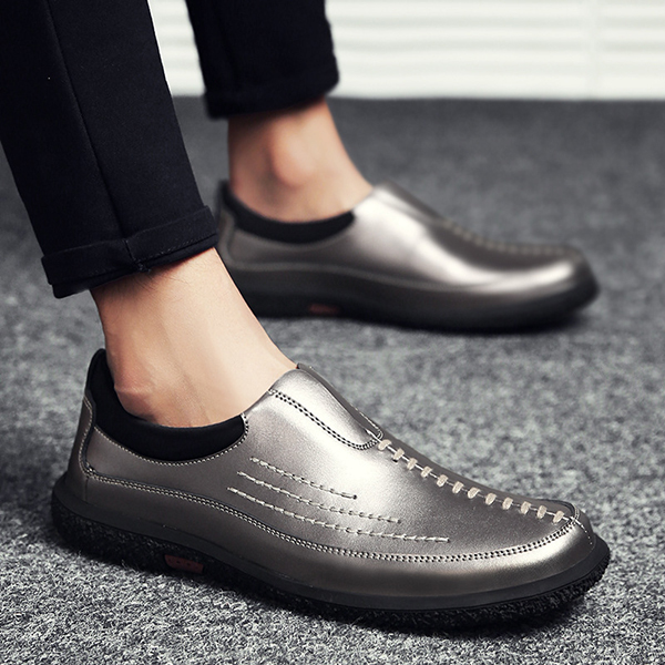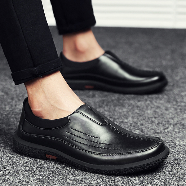 Men Casual Business Soft Sole Genuine Leather Slip On Oxfords
