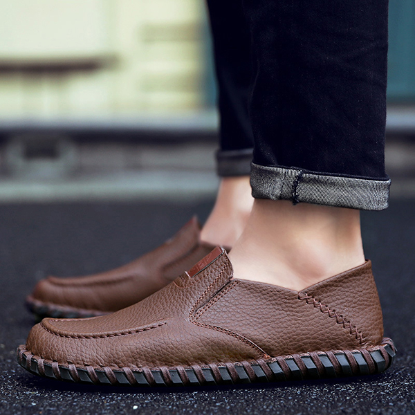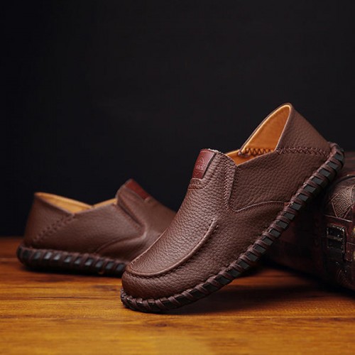 Genuine Leather Casual Slip On Soft Flat Oxfords For Men