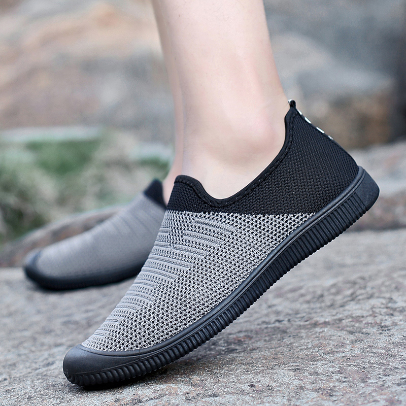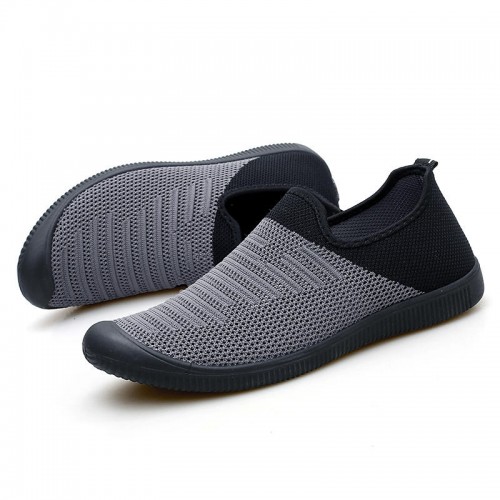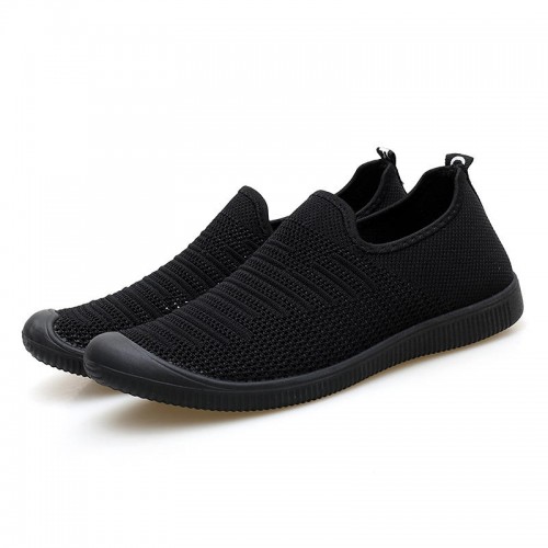 Men Breathable Knitted Mesh Casual Sneakers Soft Slip On Flats