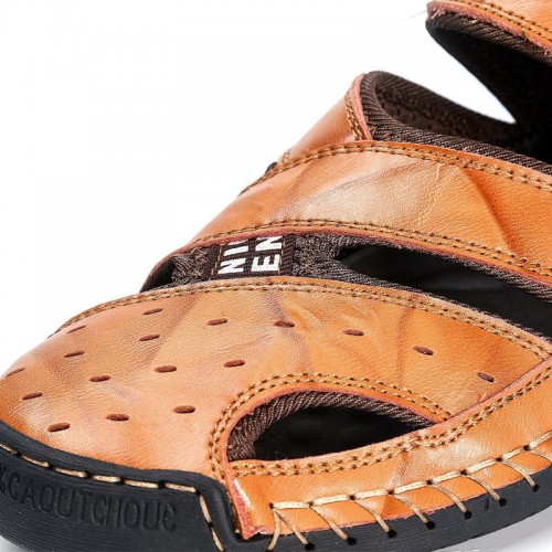 Men Closed Toe Genuine Leather Soft Breathable Sandals