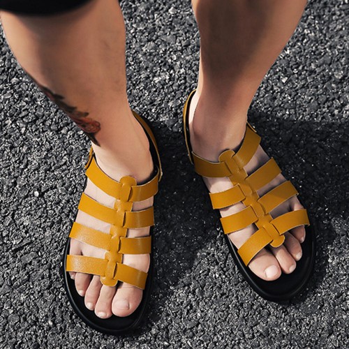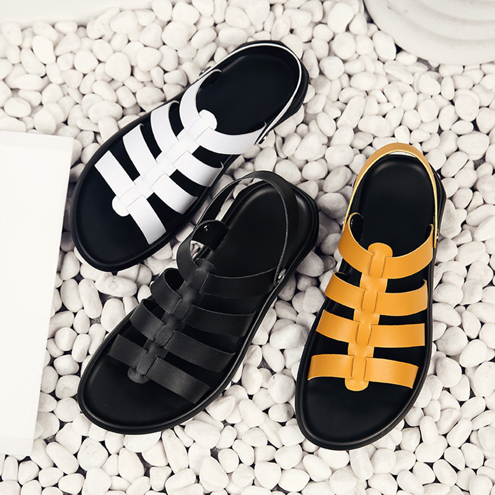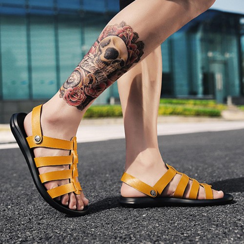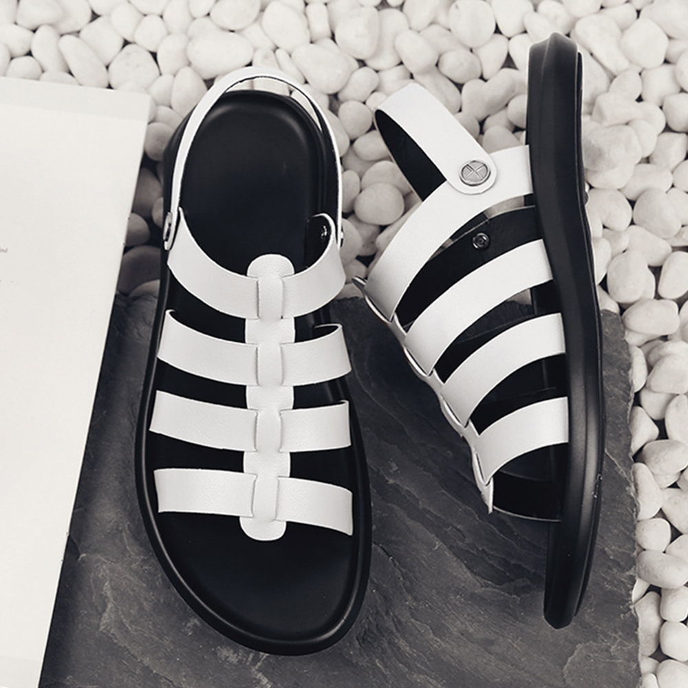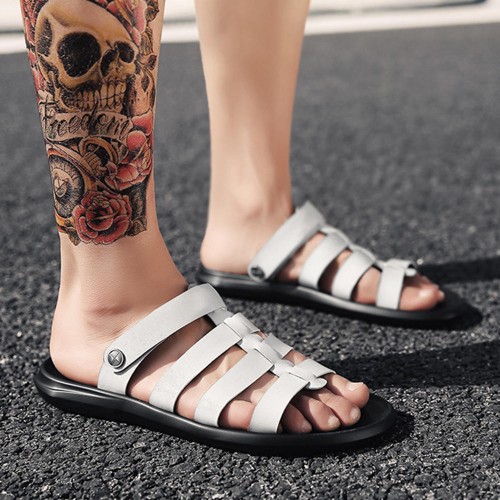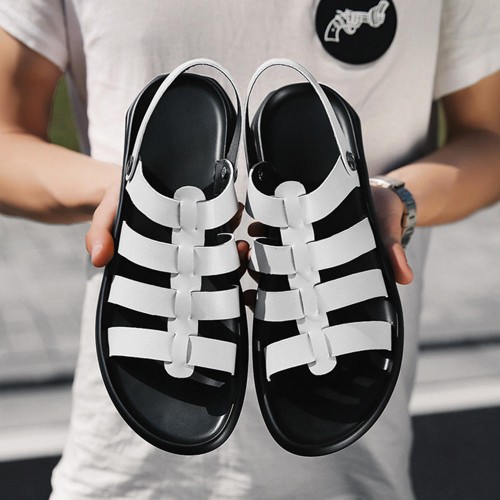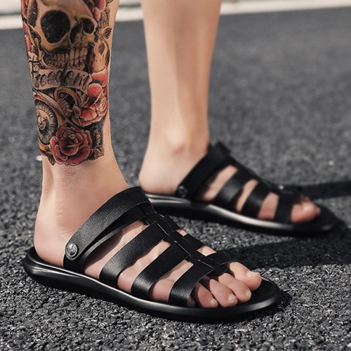 Men Breathable Leather Roman Sandals Two Way Wear Shoes