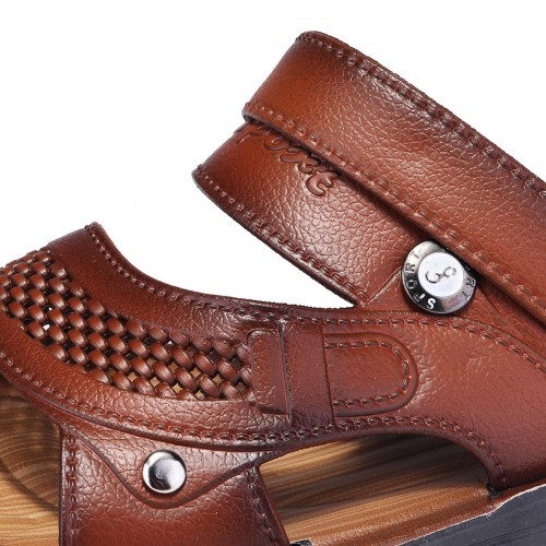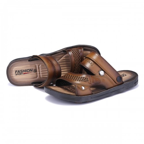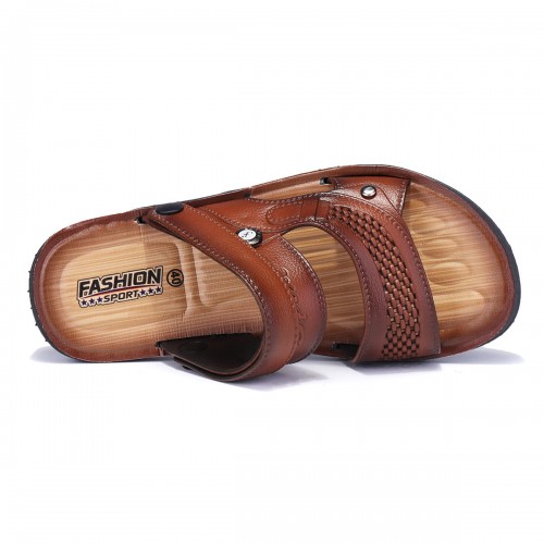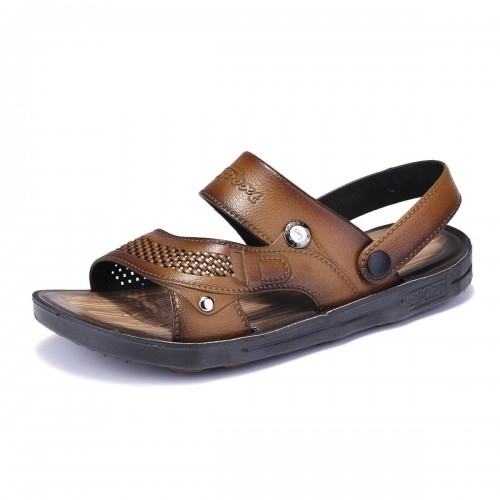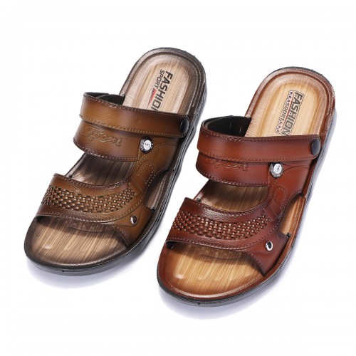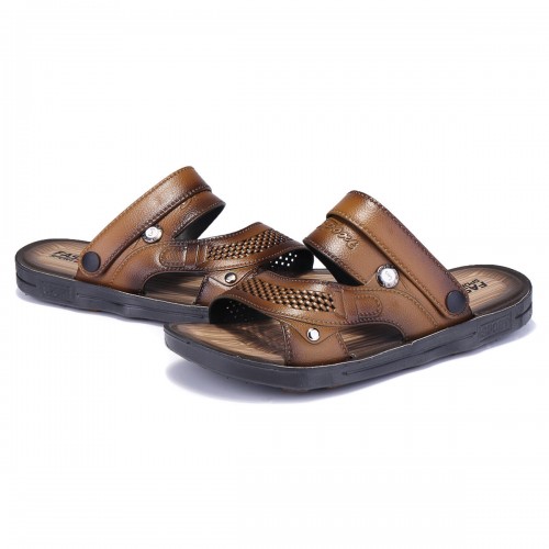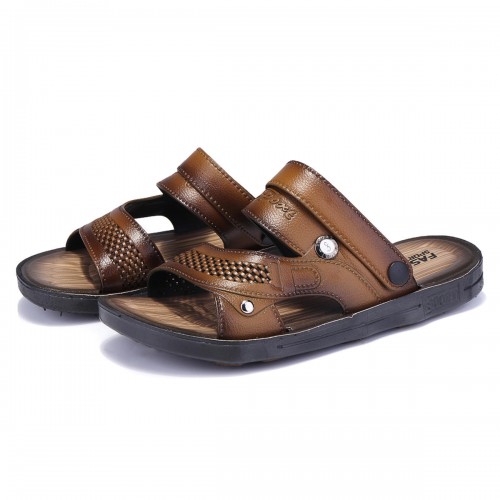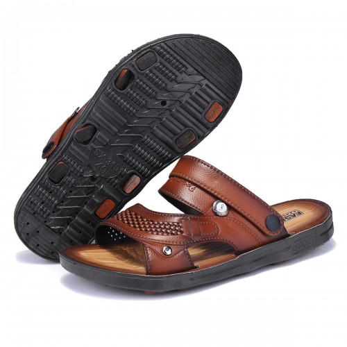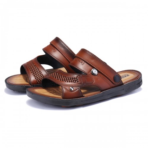 Men Comfy Two Way Wear Leather Sandals Beach Slippers Sandals