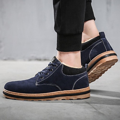 Men Warm Plush Lining Casual Lace Up Ankle Boots