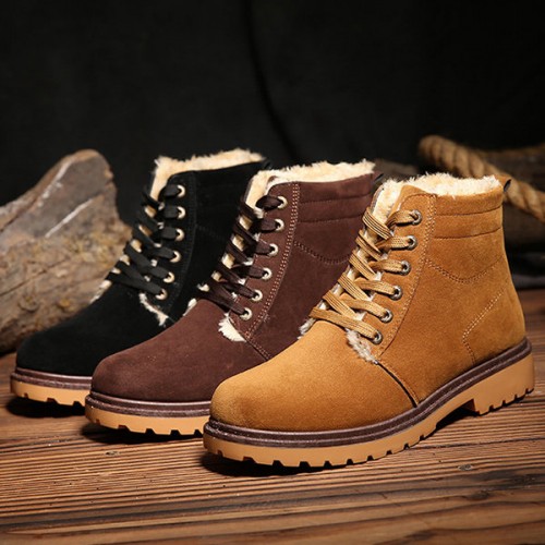 Men Coton Boots Fur Lining Keep Warm Plush High Top Outdoor Shoes