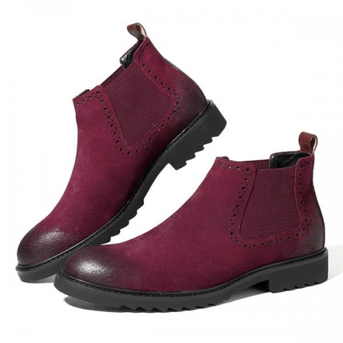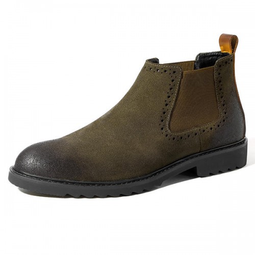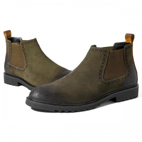 Men Soft Casual Business Elastic Band Comfy Suede Leather Ankle Boots