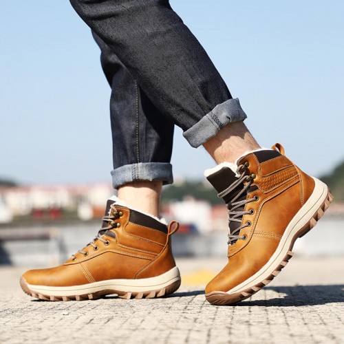 Men Casual Warm Wool Lining Retro Ankle Boots