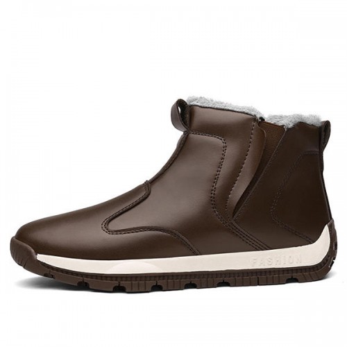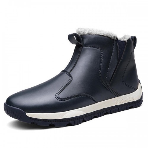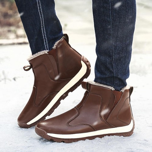 Men Comfy Genuine Leather Slip Resistance Warm Fur Lining Snow Boots